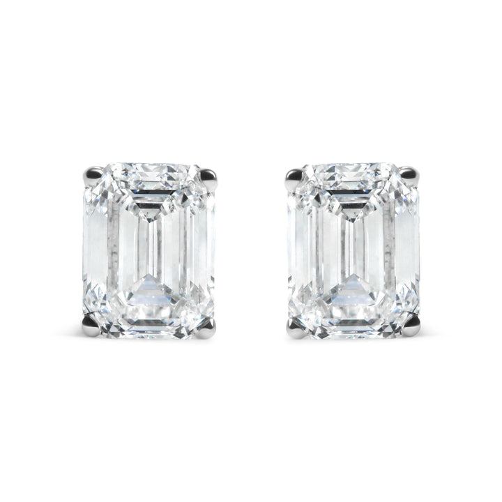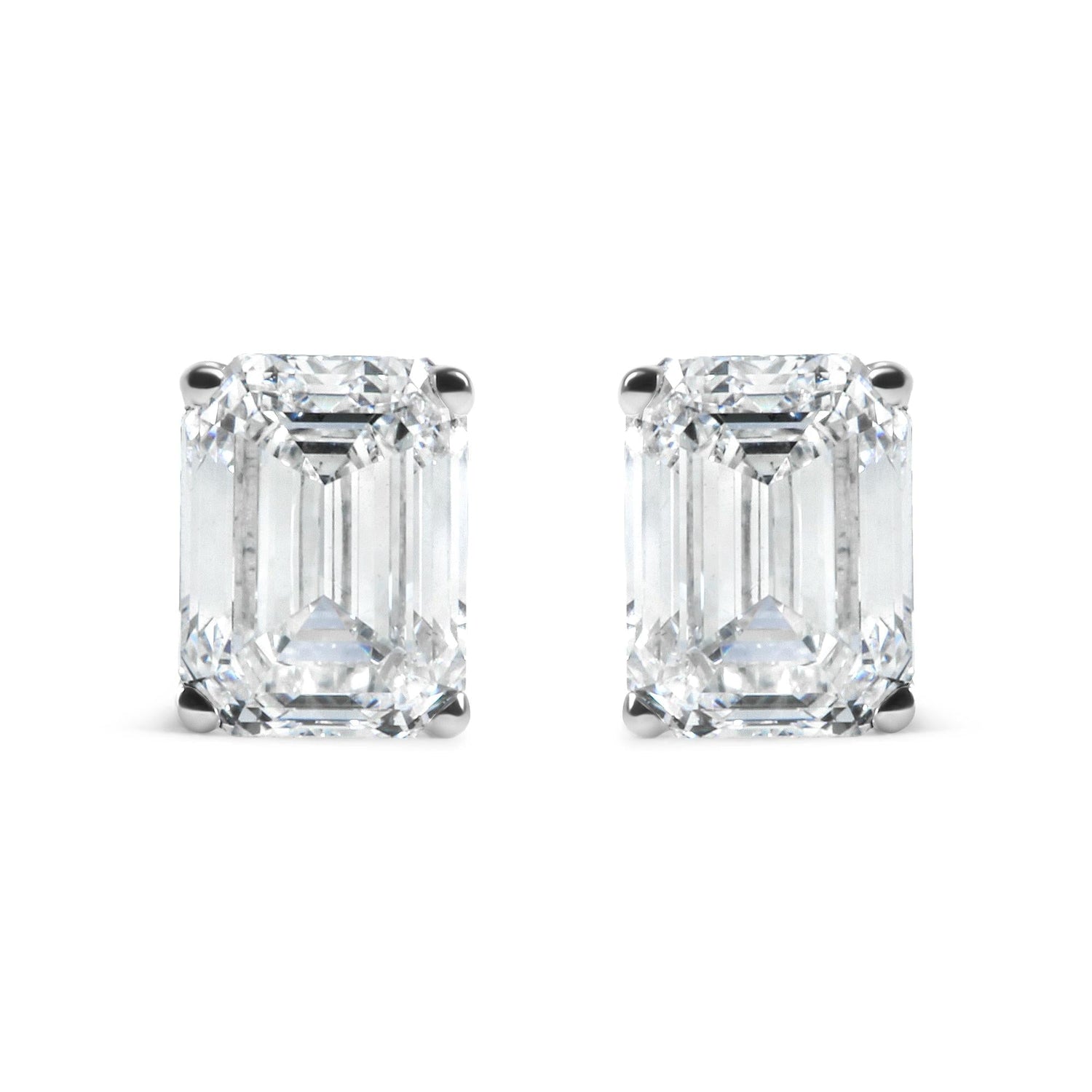14K White Gold 2.0 Cttw Emerald Cut Lab Grown Diamond Solitaire Stud Earrings (G-H Color, VS1-VS2 Clarity)