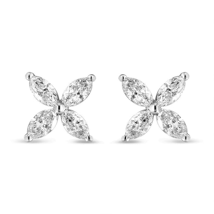 14K White Gold 1.0 Cttw Lab Grown Marquise Diamond 8 Stone Floral Leaf Stud Earrings (F-G Color, VS2-SI1 Clarity)