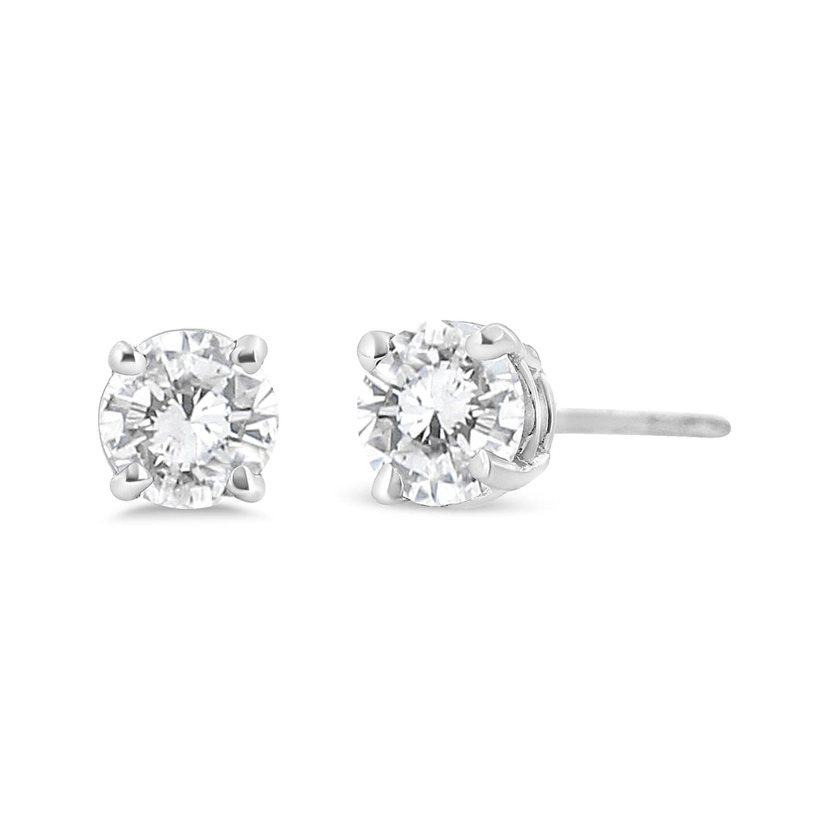 These 14K White Gold 3/4 Cttw Lab Grown Diamond 4-Prong Classic Stud Earrings by Haus of Brilliance offer a modern, eco-friendly twist on a classic design. Featuring two round lab-grown diamonds, these stud earrings are set in 14K white gold with a secure screw-on back for added peace of mind. With a total diamond weight of 3/4 cttw, these earrings are perfect for both everyday wear and special occasions.
