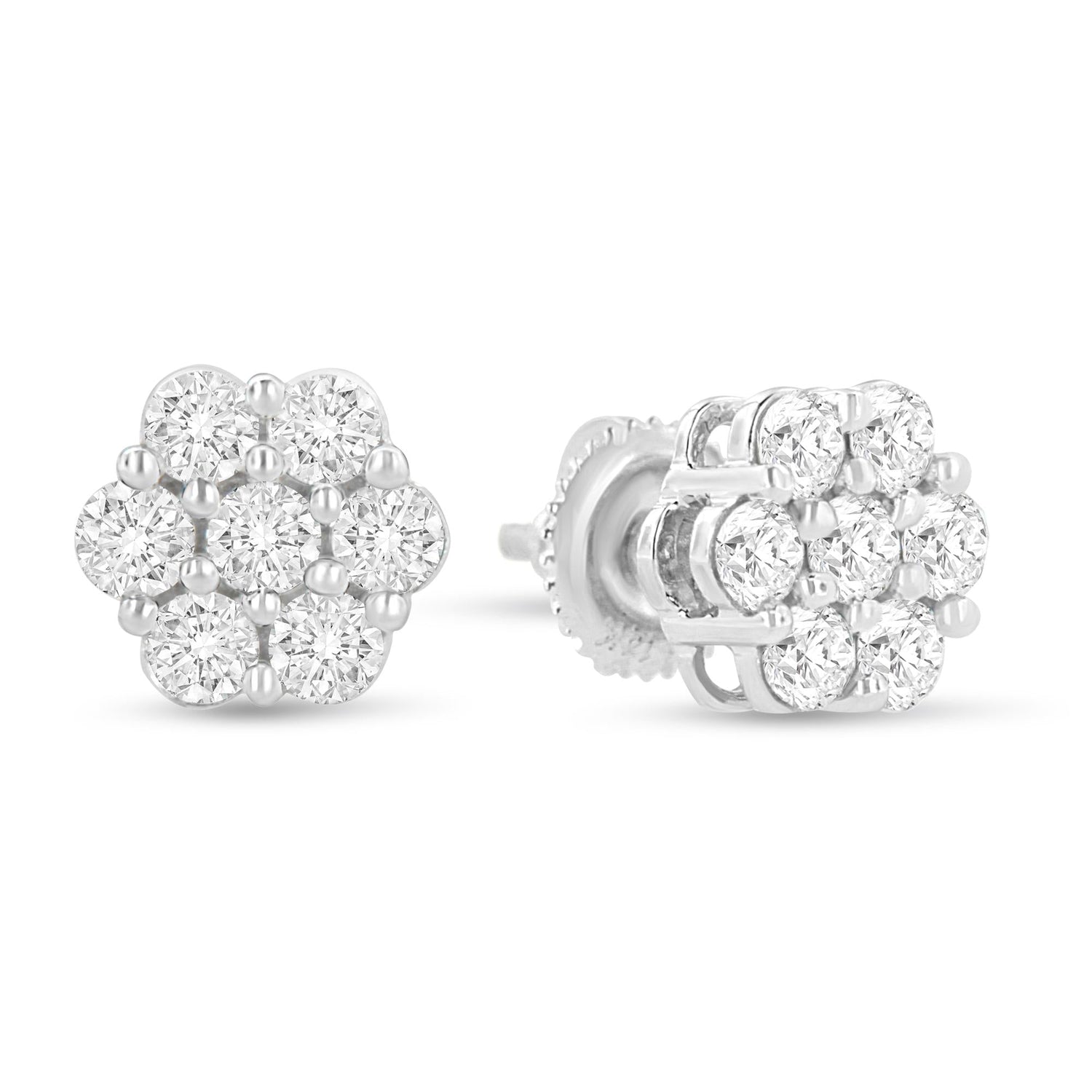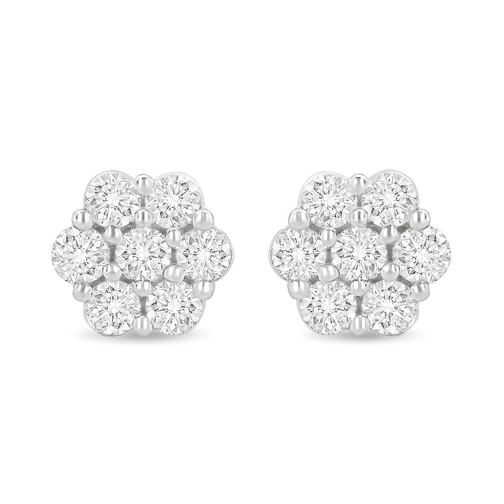 14K White Gold 1 1/2 cttw Prong Set Round-Cut Diamond Floral Cluster Stud Earrings (I-J Color, SI1-SI2 Clarity)