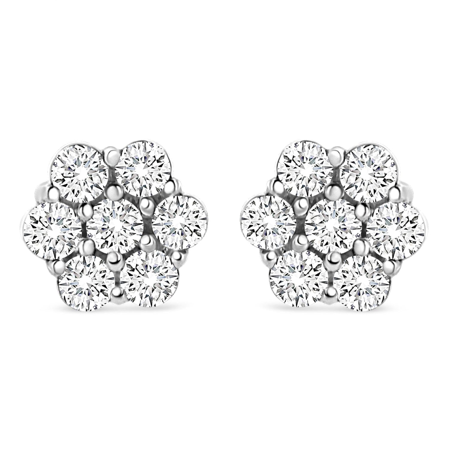 These 14K White Gold 1/2 Cttw Round-Cut Diamond Floral Stud Earrings by Haus of Brilliance are a timeless addition to your jewelry collection. The floral design is created with 7 round-cut diamonds set in a prong setting, offering a sparkling, elegant look. Crafted in 14K white gold, these earrings come with a screw-back mechanism for a secure fit.