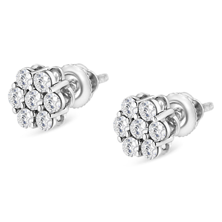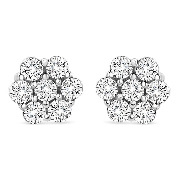 Crafted in 14K white gold with 1/2ct total weight of round-cut diamonds (I-J Color, SI2-I1 Clarity), featuring a floral design with prong-set diamonds and screw-back closure.