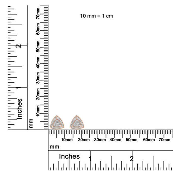 Crafted in 14K rose gold over rhodium-plated .925 sterling silver with 8 round-cut natural diamonds (H-I color, I2-I3 clarity). Trillion-shaped stud design with push back closures.