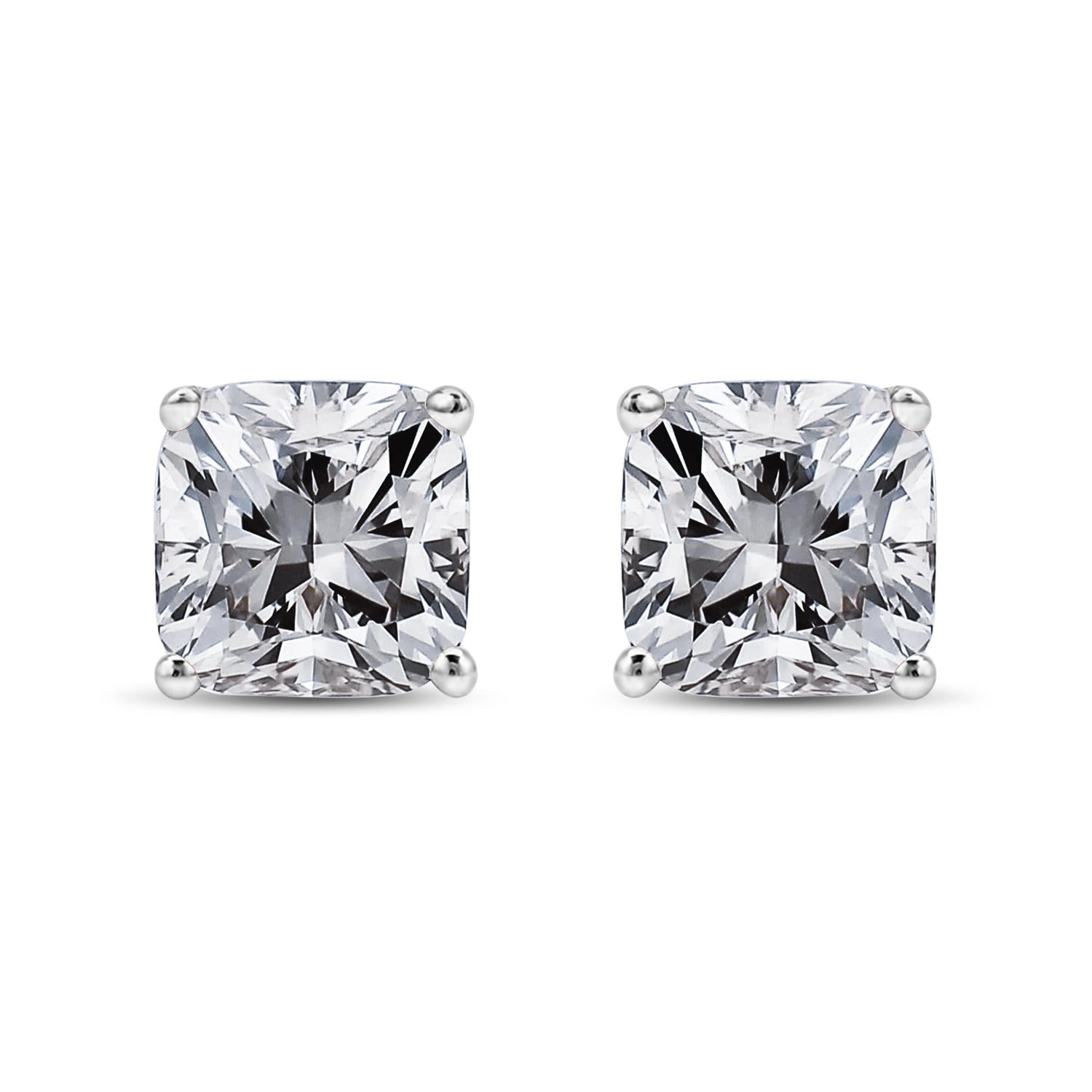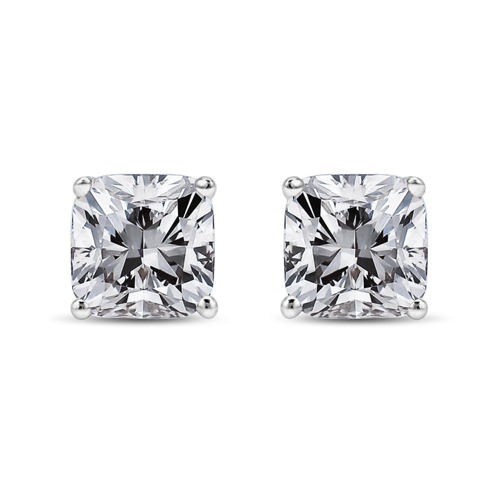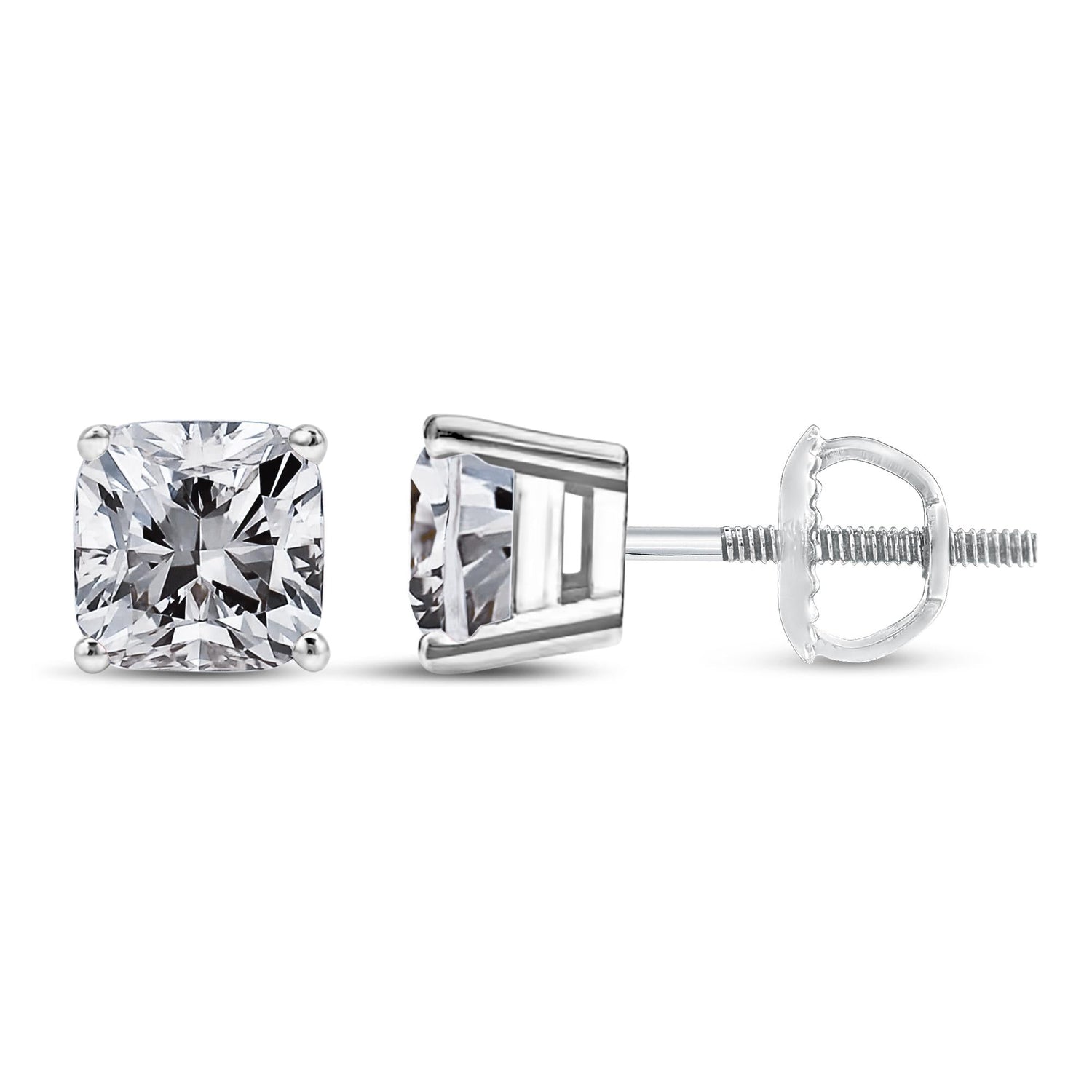 Crafted in 14K white gold with two clarity-enhanced princess cut diamonds (I-J color, I1-I2 clarity), totaling 1.50 carats. Set in 4-prong settings with secure screw backs.