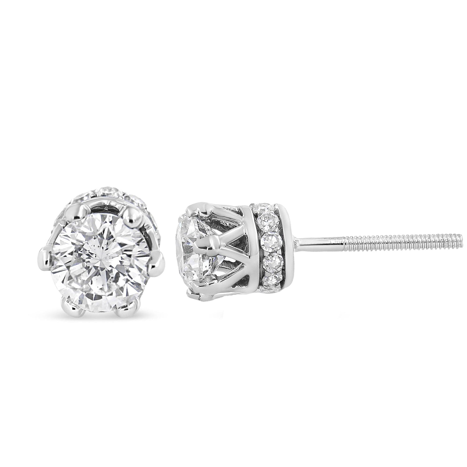 14K White Gold 2.0 Cttw Round Cut Prong-Set Diamond Crown Stud Earring (I-J Color, I1-I2 Clarity)