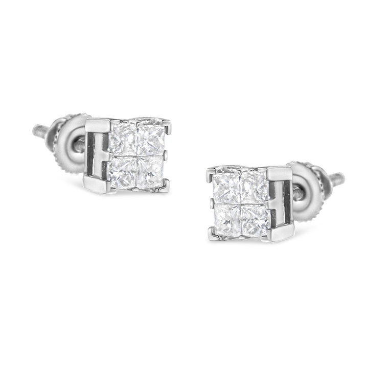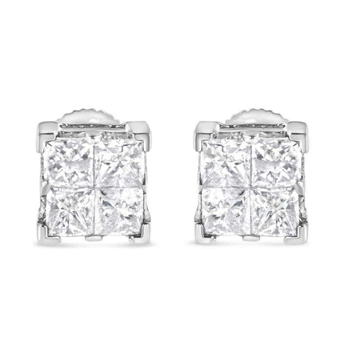 10K White Gold 3/4 Cttw Invisible Set Princess-Cut Diamond Composite Square Stud Earrings (H-I Color, SI2-I1 Clarity)