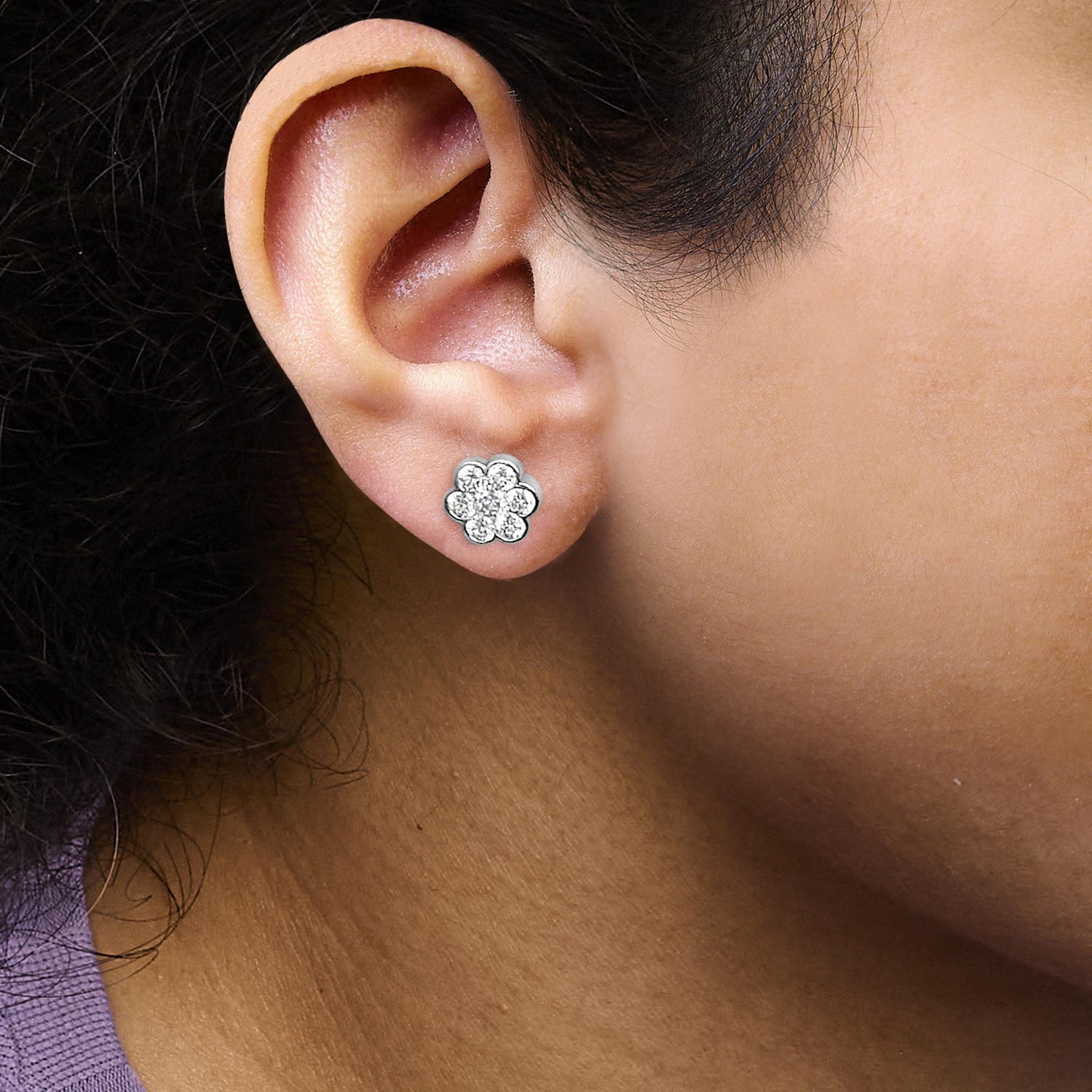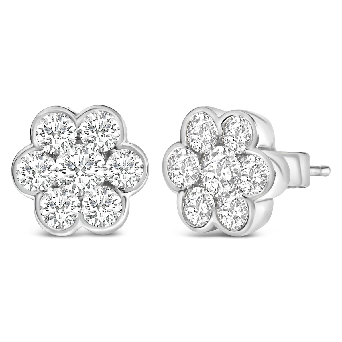 14K White Gold 1 1/3 Cttw Diamond Bezel Style 7 Stone Floral Cluster Stud Earrings (H-I Color, VS2-SI1 Clarity)