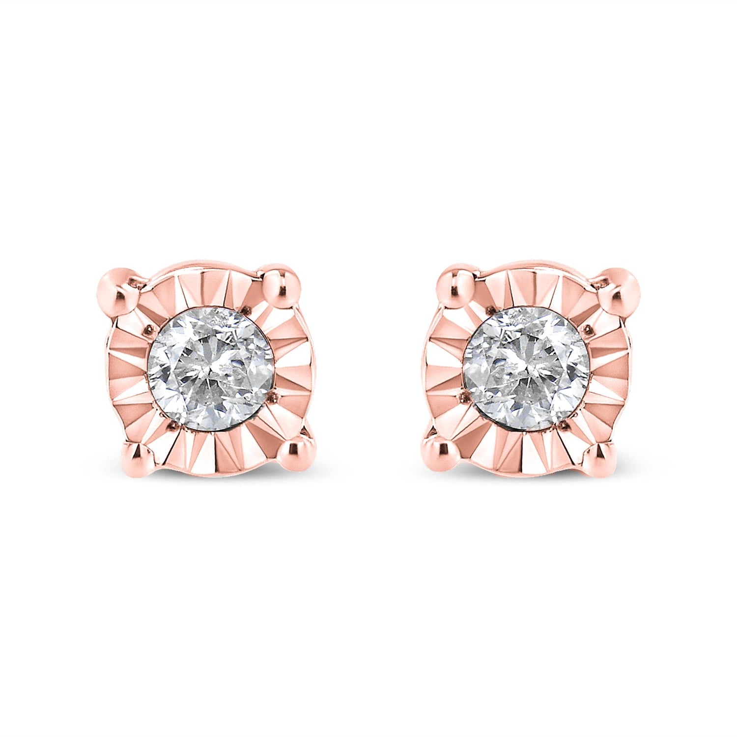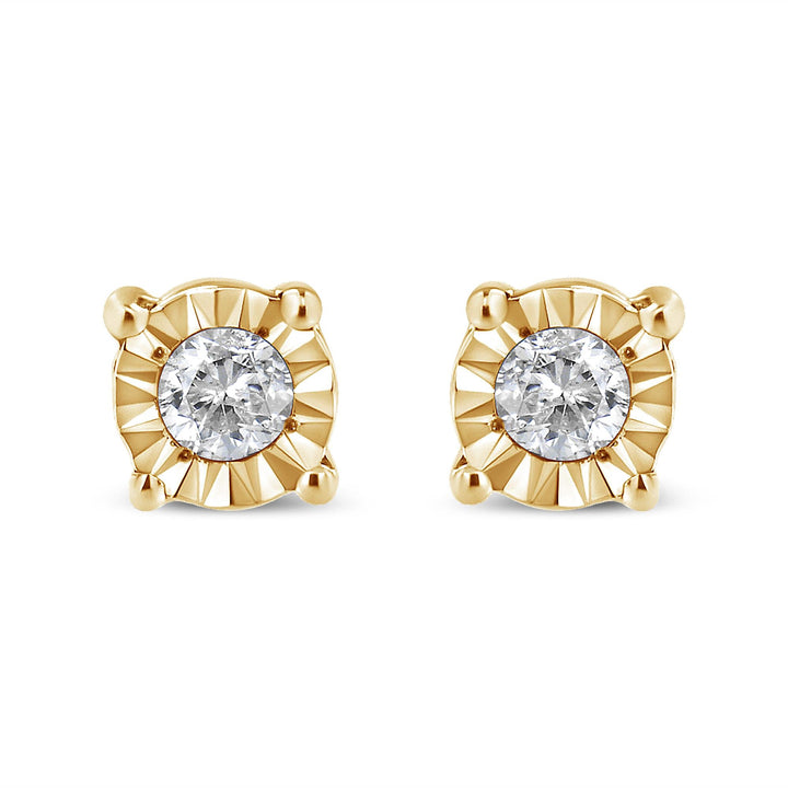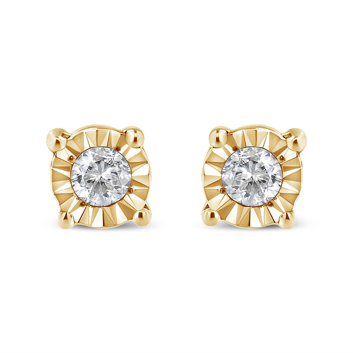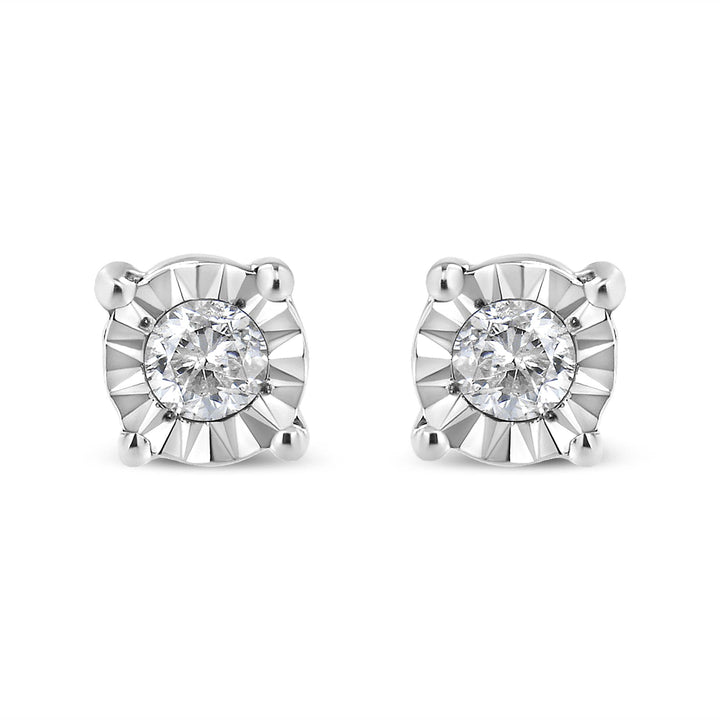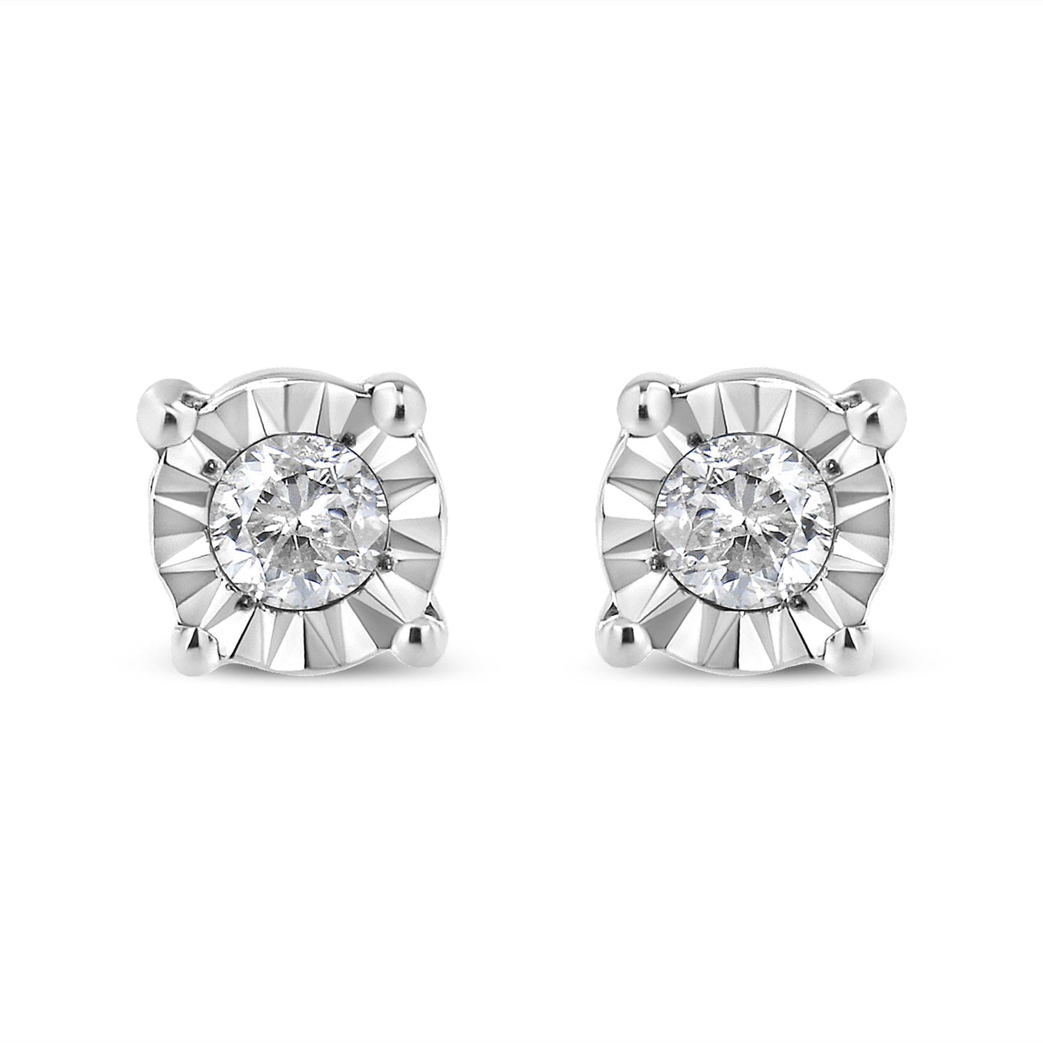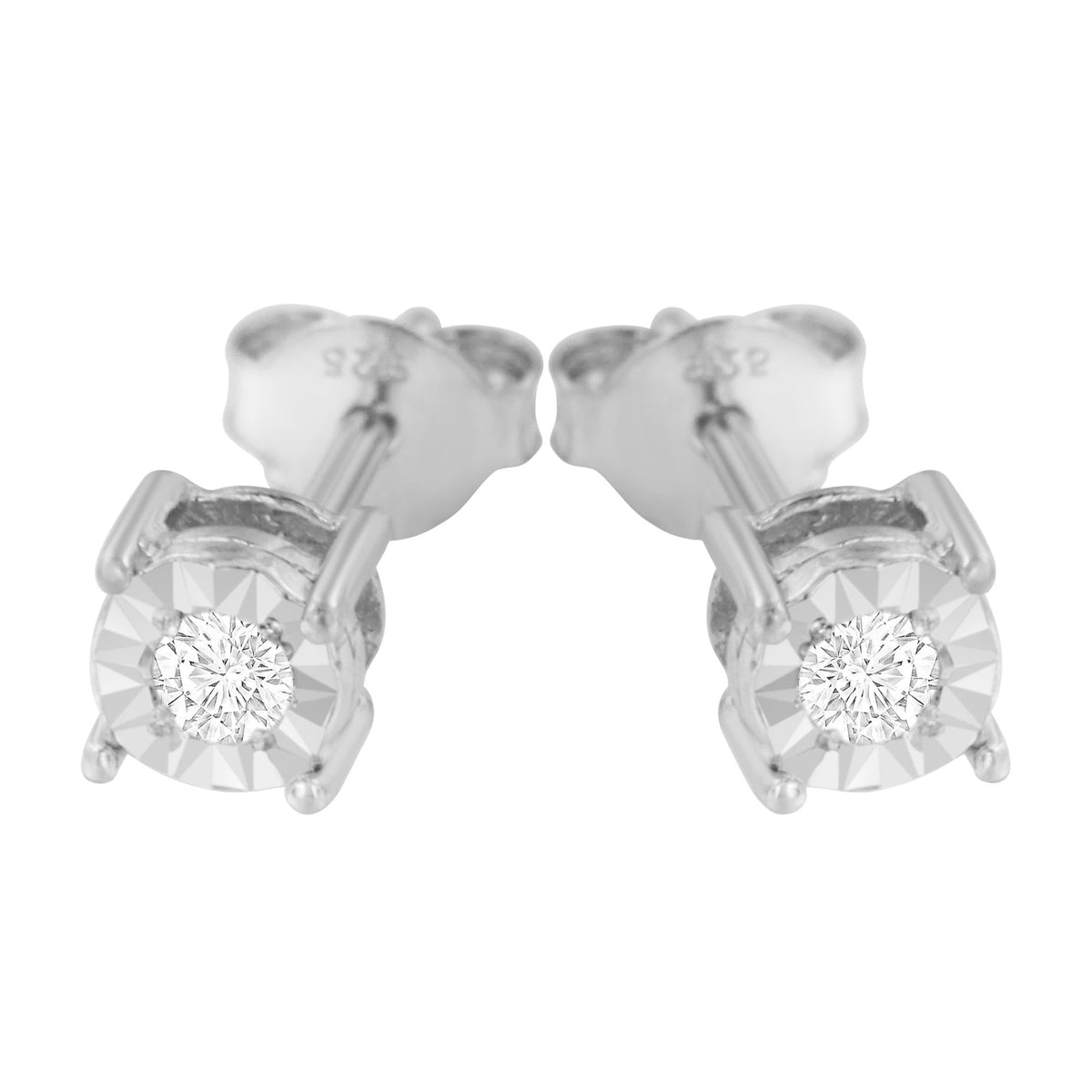 These .925 Sterling Silver 1/10 Cttw Round Brilliant-Cut Diamond Miracle-Set Stud Earrings by Haus of Brilliance are designed to create the illusion of larger diamonds. The round-cut diamonds are set in a miracle plate, making these earrings sparkle brilliantly. These earrings are perfect for adding a touch of elegance to your wardrobe.