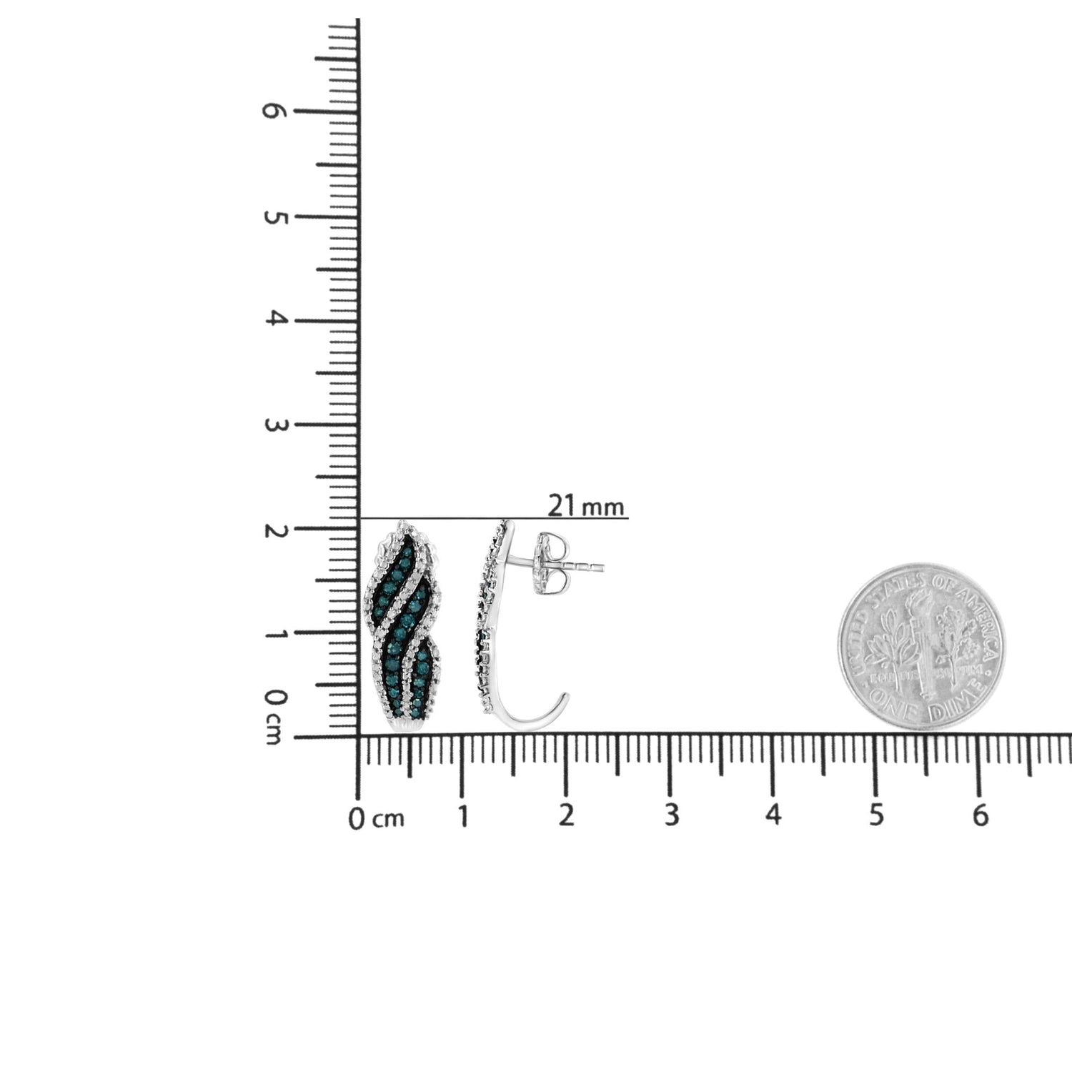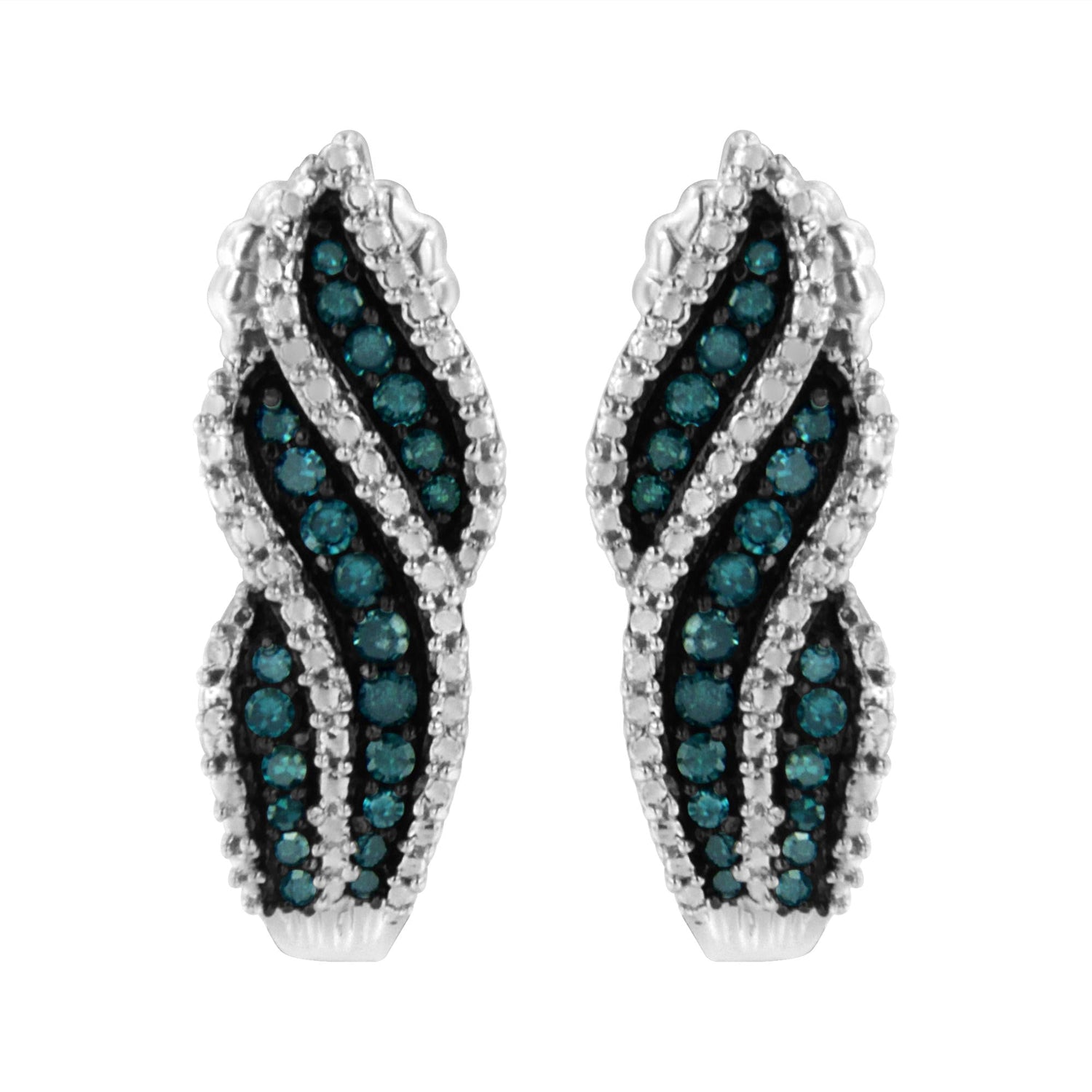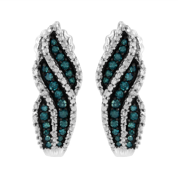 Crafted in sterling silver with 1/2ct total weight of treated blue diamonds (I1-I2 Clarity), featuring a dangling stud design.