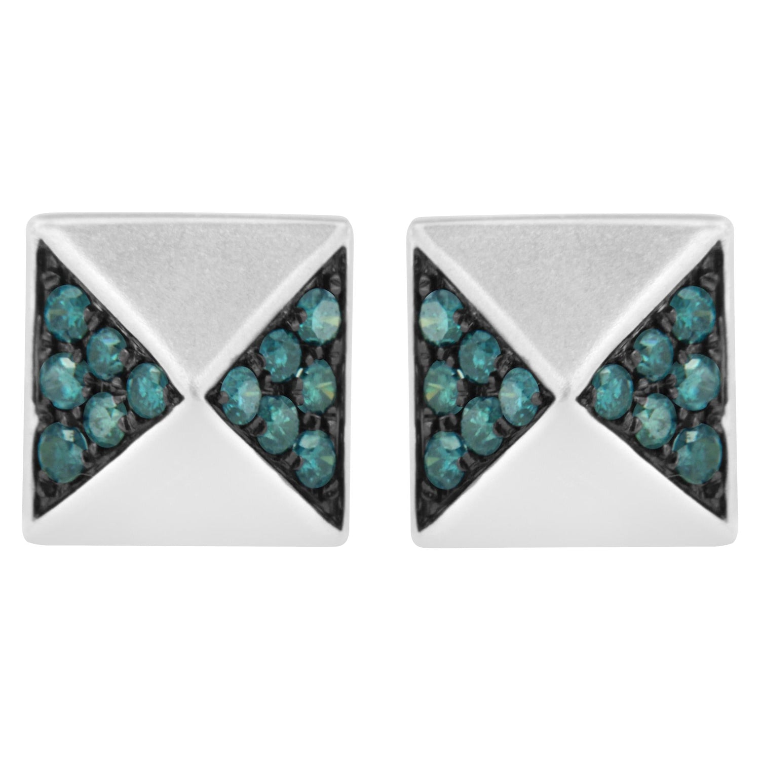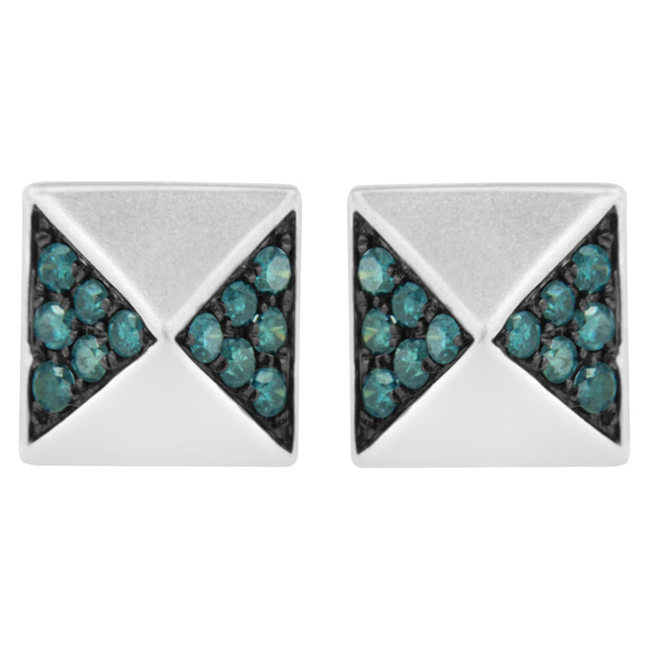 14K White Gold 1/4 Cttw Treated Blue Diamond Pyramid Stud Earring (Blue Color, SI1-SI2 Clarity)