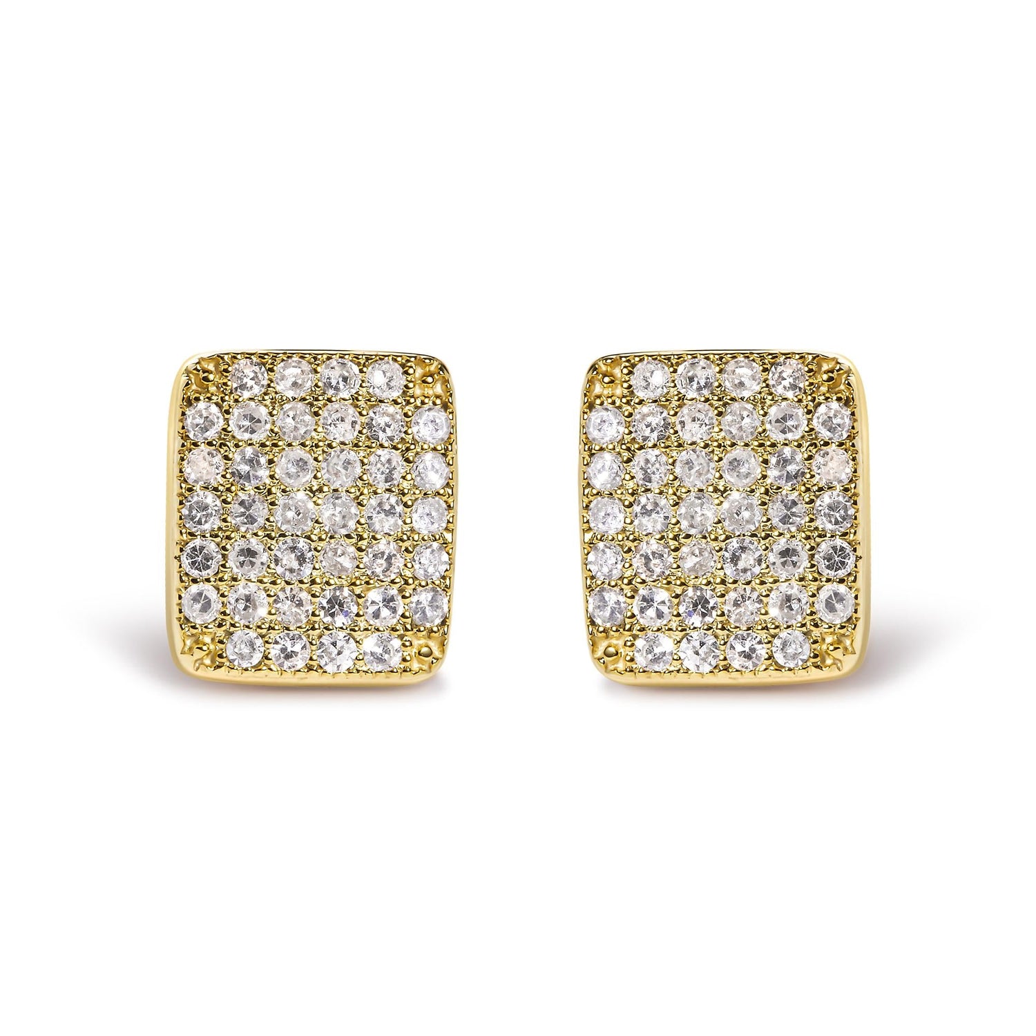 14K Yellow Gold 1/2 Cttw Diamond Square Shaped Composite Cluster Stud Earrings (I-J Color, I1-I2 Clarity)