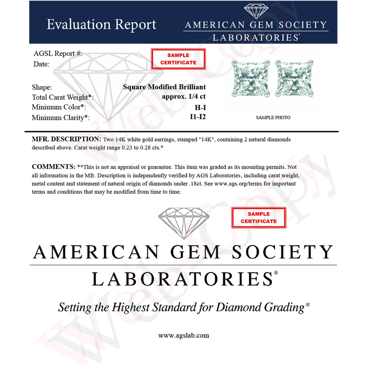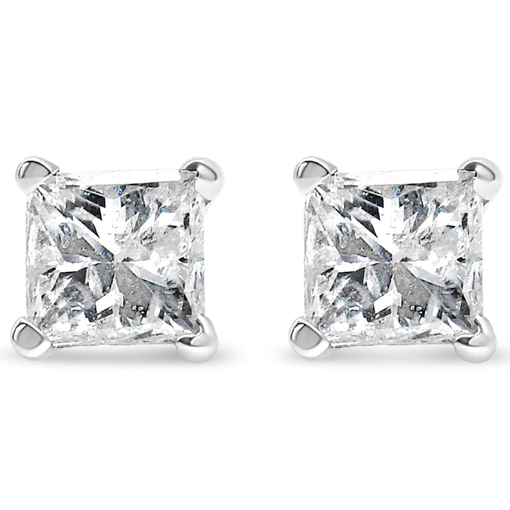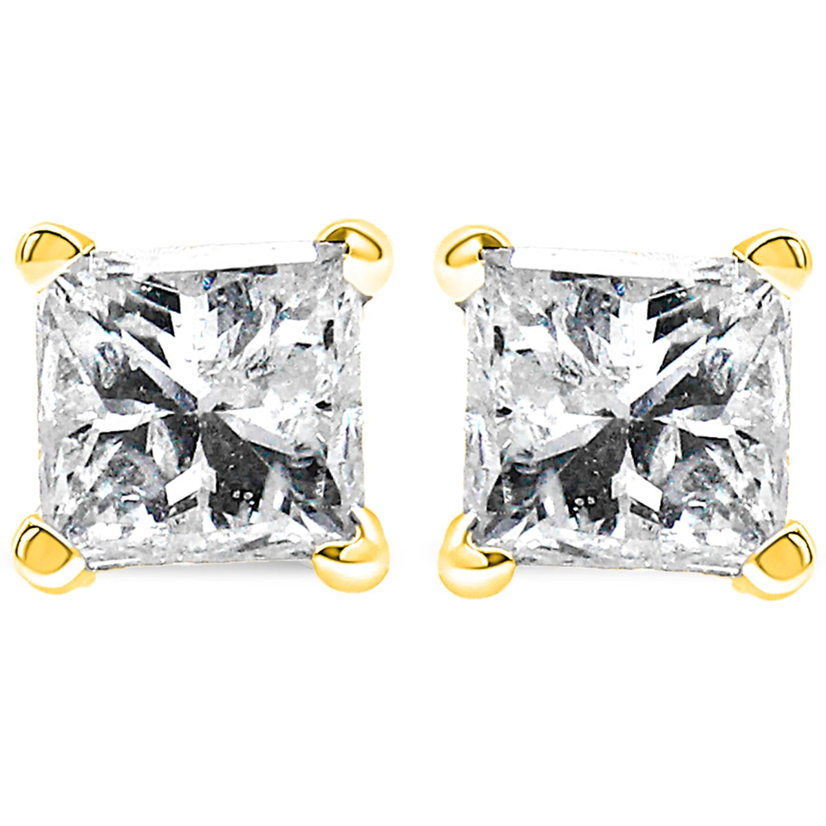 AGS Certified 14K Gold 4-Prong Set Princess-Cut Solitaire Diamond Push Back Stud Earrings (H-I Color, I1-I2 Clarity)
