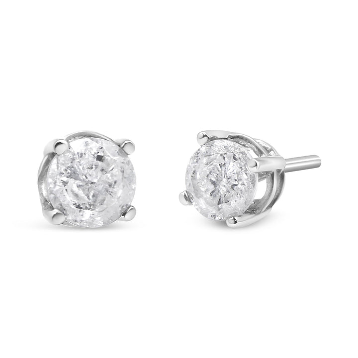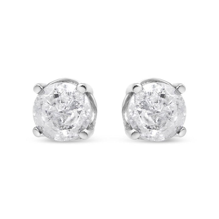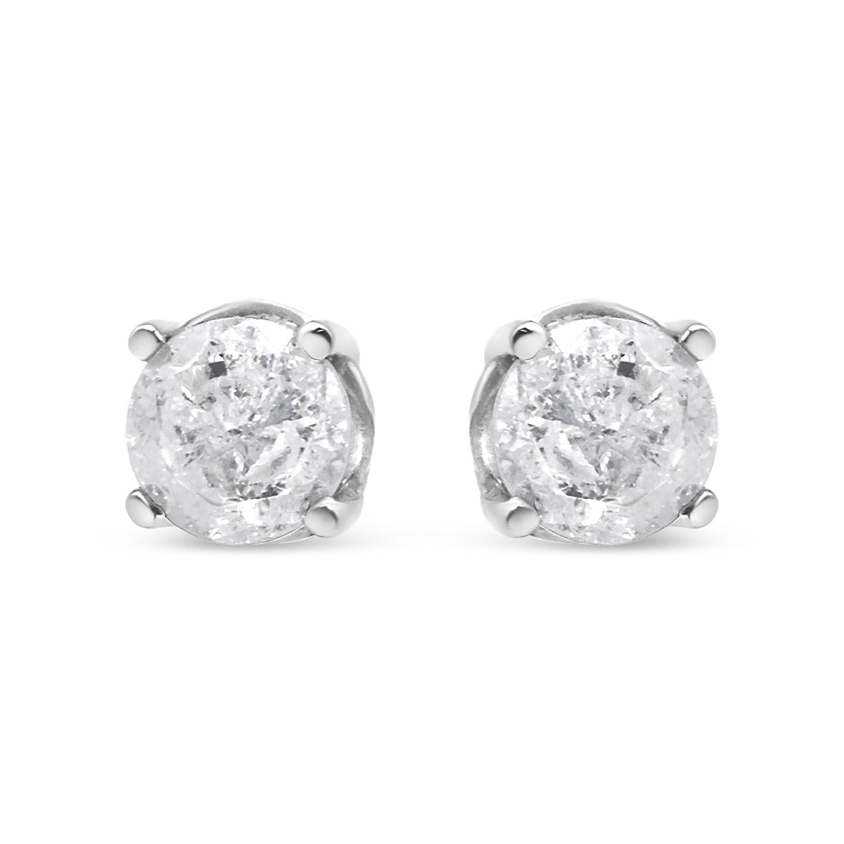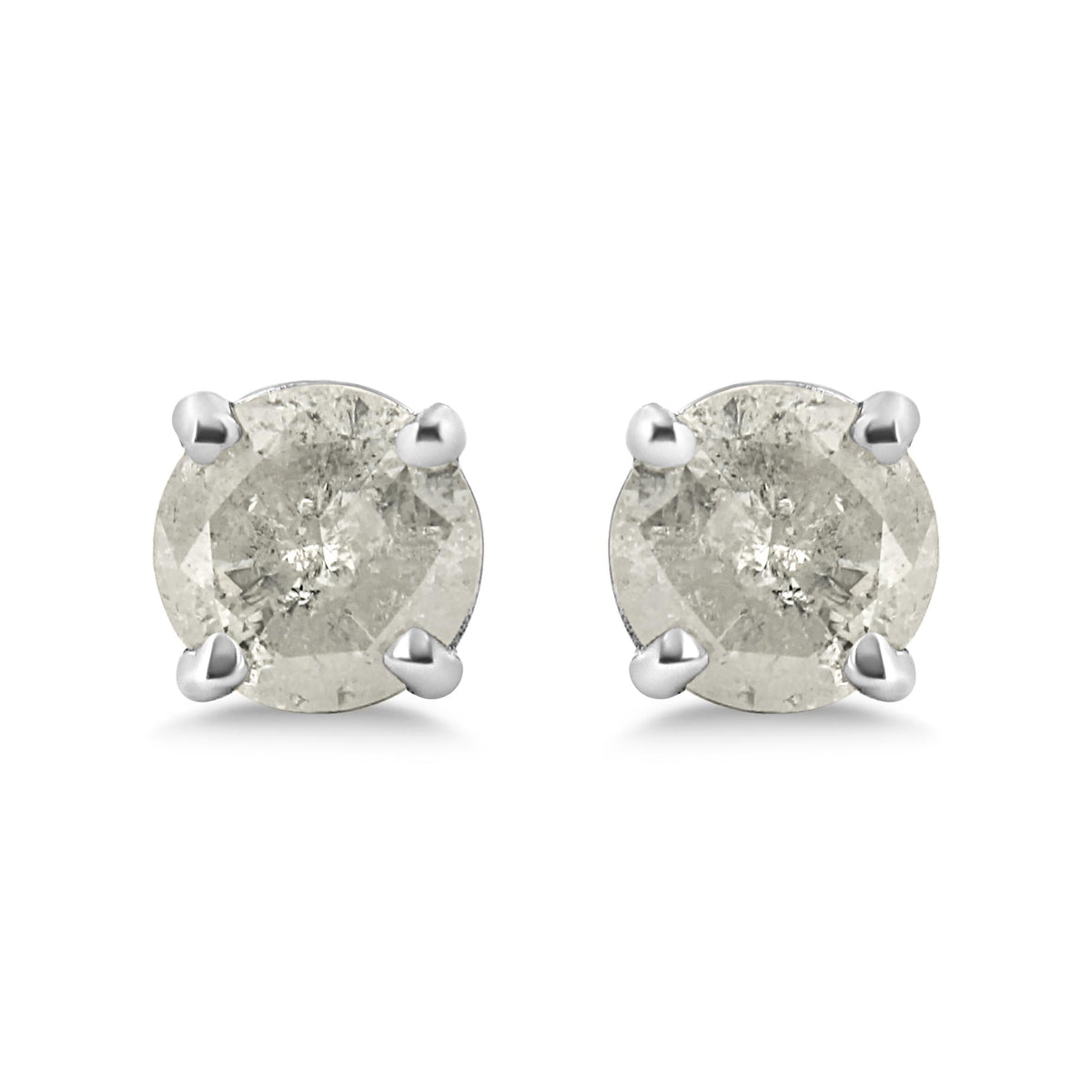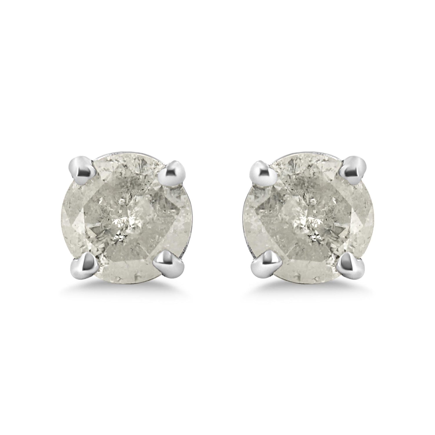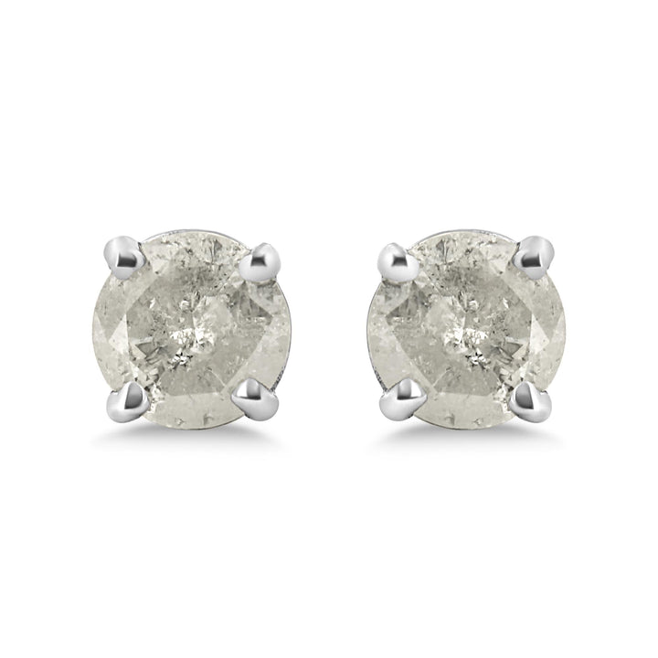 .925 Sterling Silver 4-Prong Round-cut 'Salt and Pepper' Diamond Classic Stud Earrings (I-J Color, I3 Clarity)
