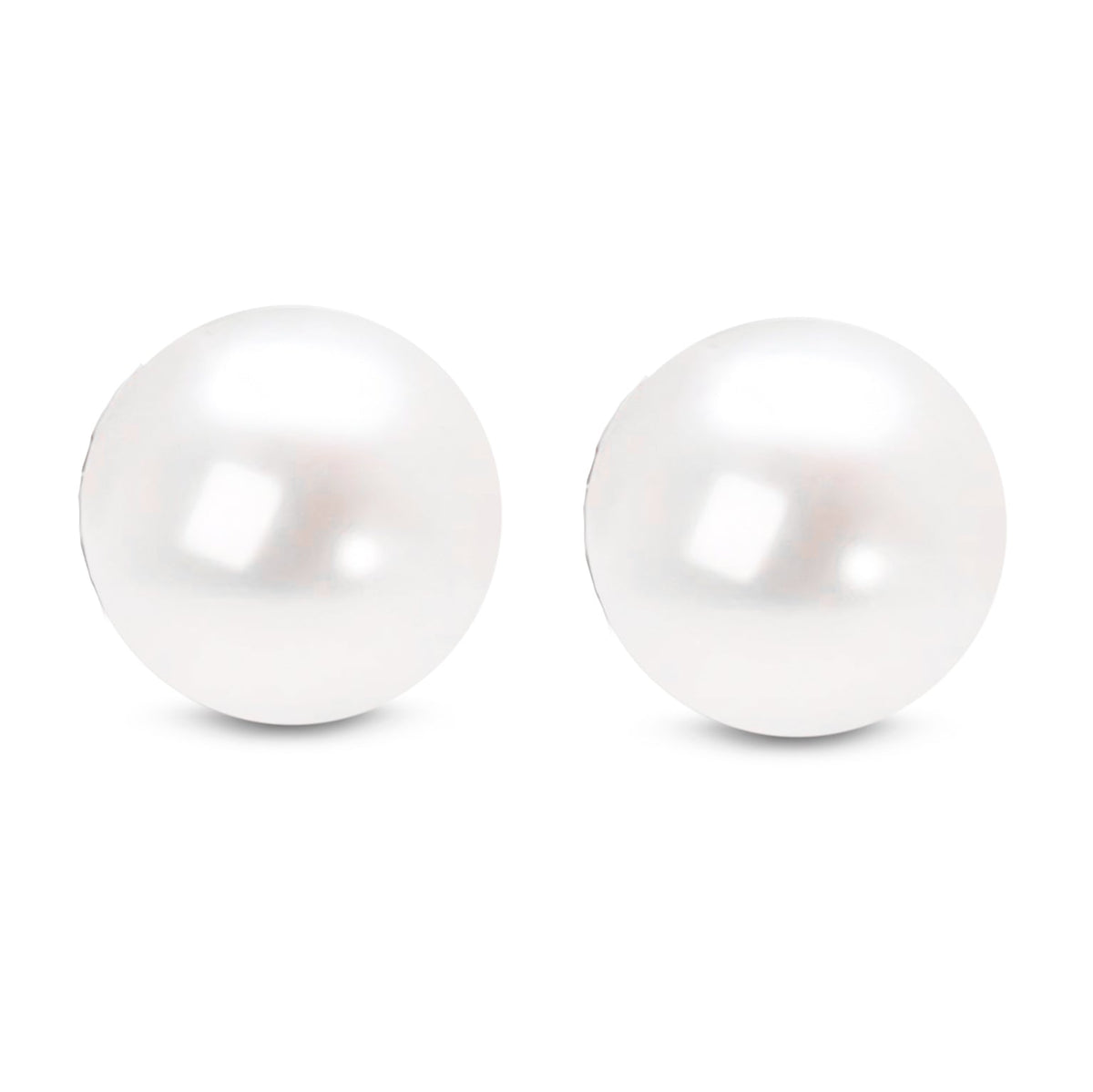 14K Gold Round White Saltwater Akoya Cultured Pearl Stud Earrings AAA+ Quality - Choice of MM Size