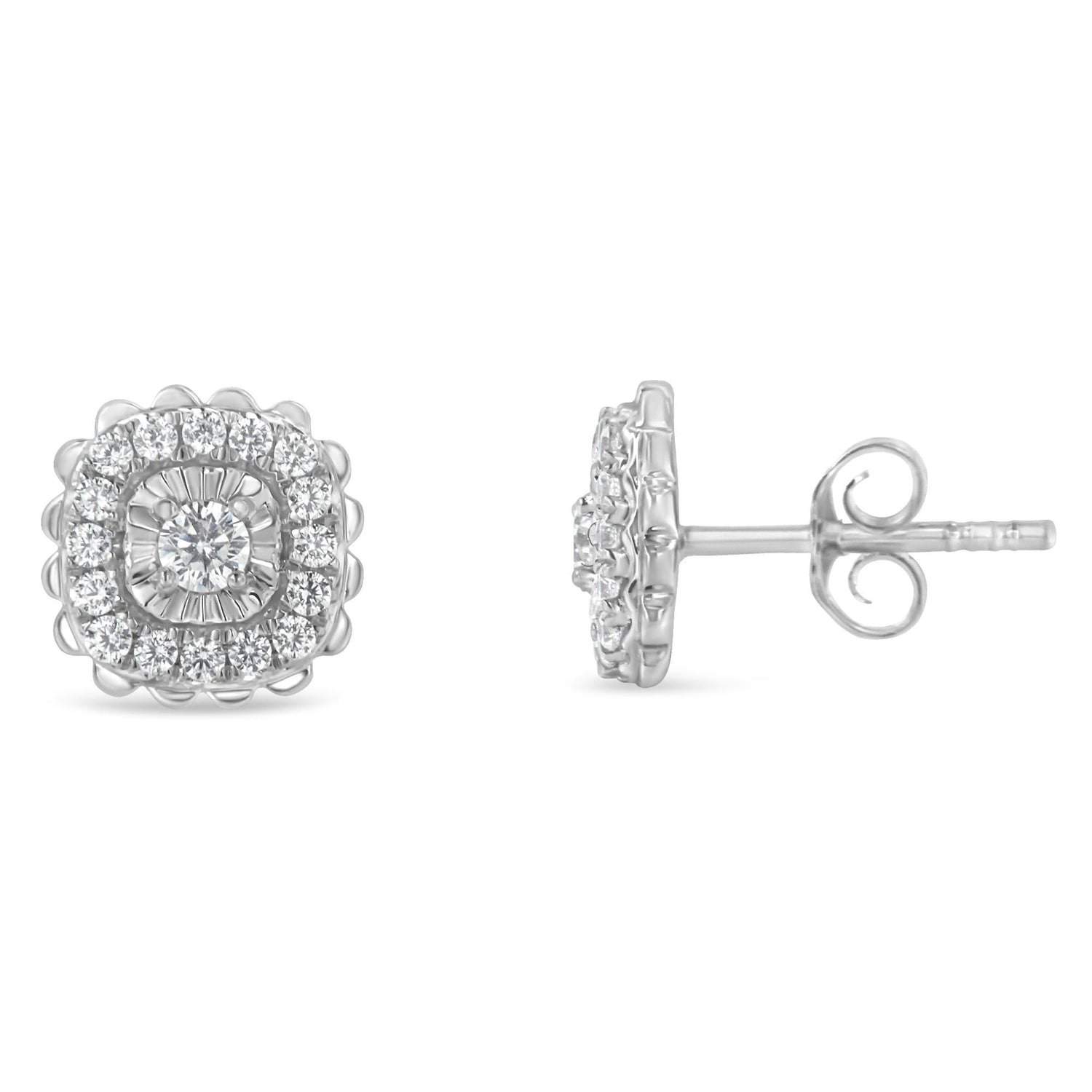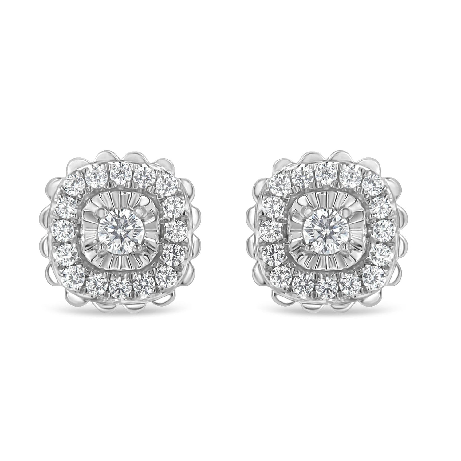 .925 Sterling Silver 1/2 Cttw Round-Cut Diamond Halo Cluster Stud Earring (I-J Color, I2-I3 Clarity)