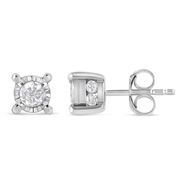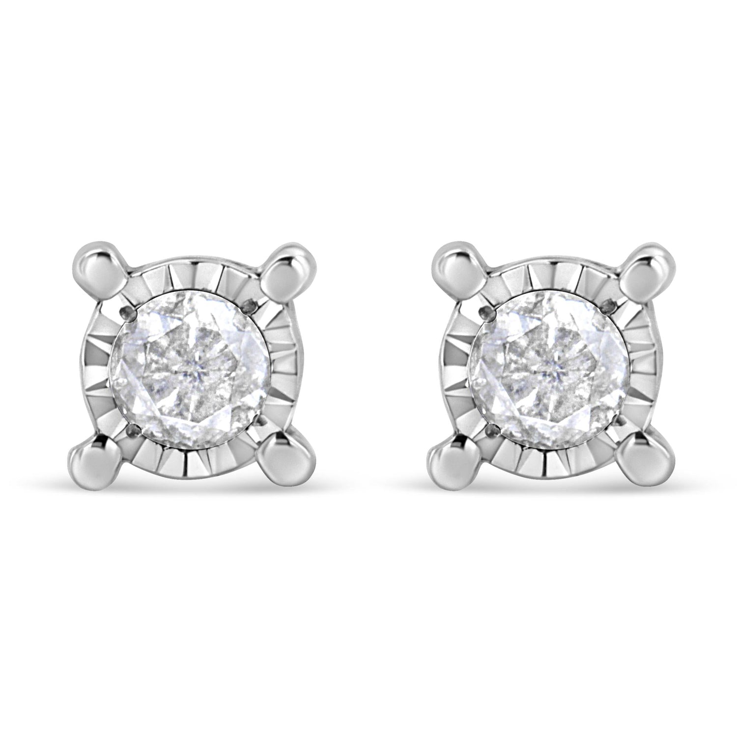 .925 Sterling Silver 1.0 Cttw Round Brilliant-Cut Diamond Miracle-Set Solitaire Stud Earrings (H-I Color, I2-I3 Clarity)