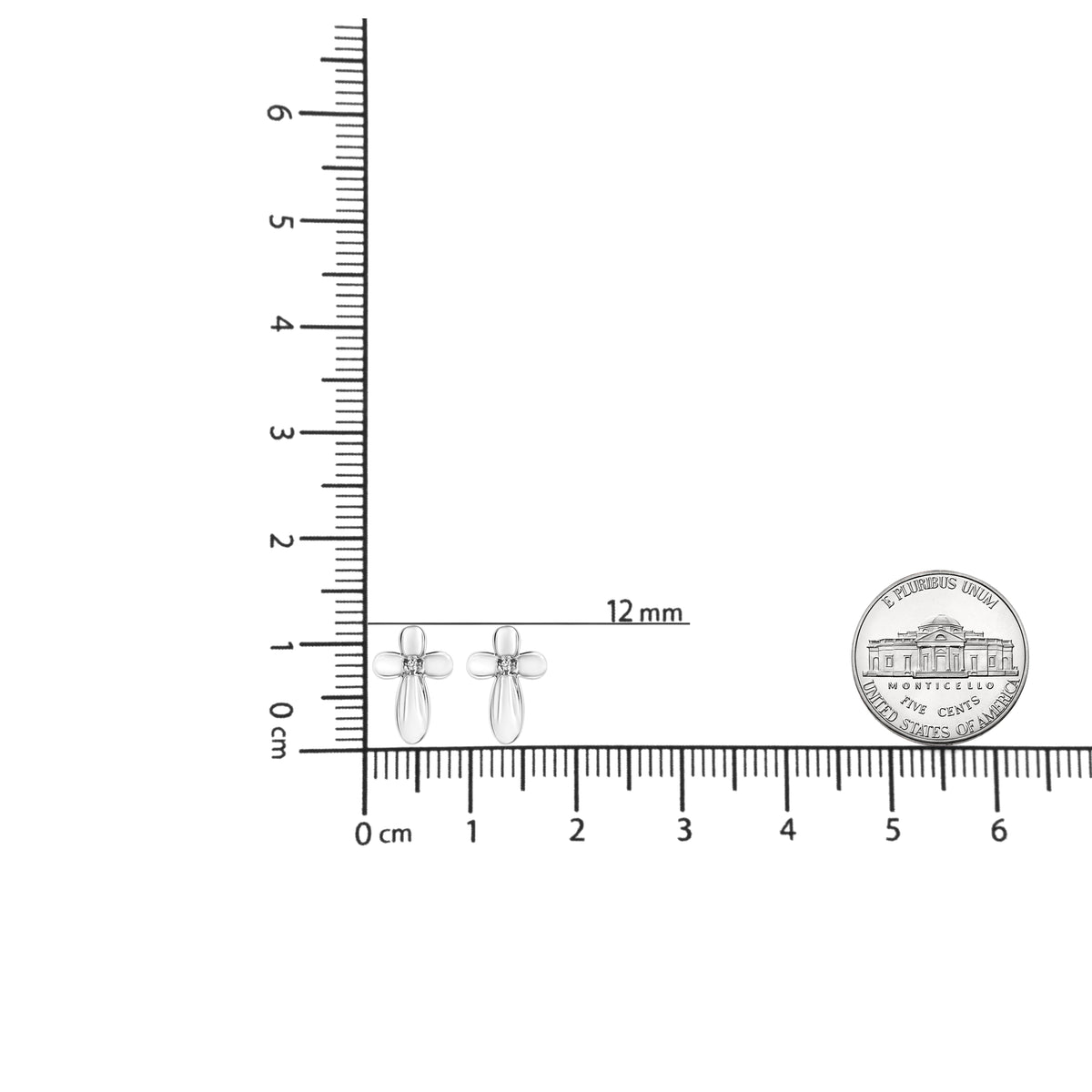These .925 Sterling Silver Prong-Set Diamond Accent Floral Cross Stud Earrings by Haus of Brilliance symbolize religious devotion with two radiant prong-set single-cut diamonds. The cross design, crafted in sterling silver, adds a powerful yet elegant touch. With a total diamond weight of 1/100 carat, these earrings are a meaningful gift.