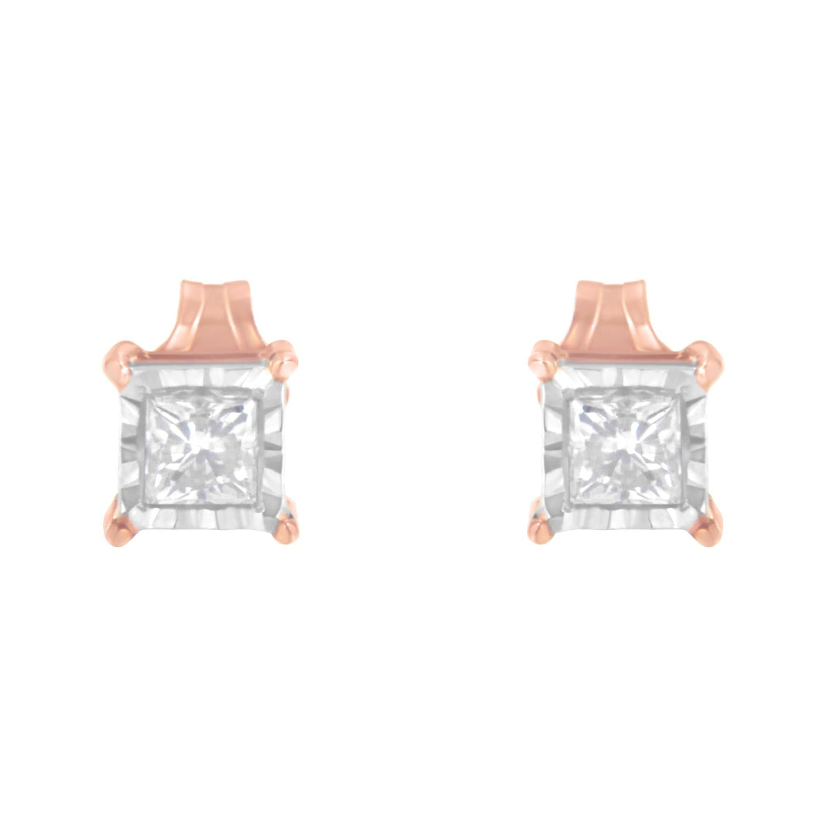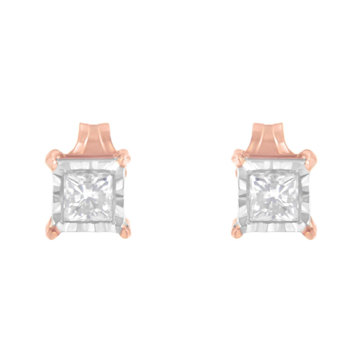 14K Rose Gold Plated Two-Tone .925 Sterling Silver 1/2 Cttw Princess-Cut Square Near Colorless Diamond Solitaire Miracle-Plate Stud Earrings (J-K Color, I2-I3 Clarity)