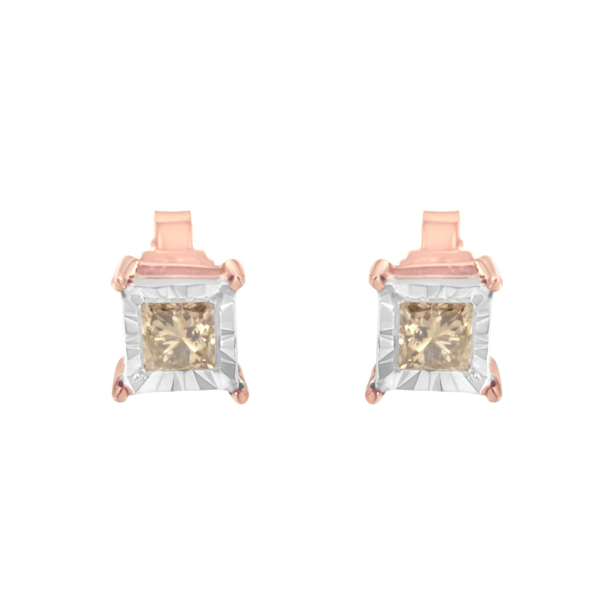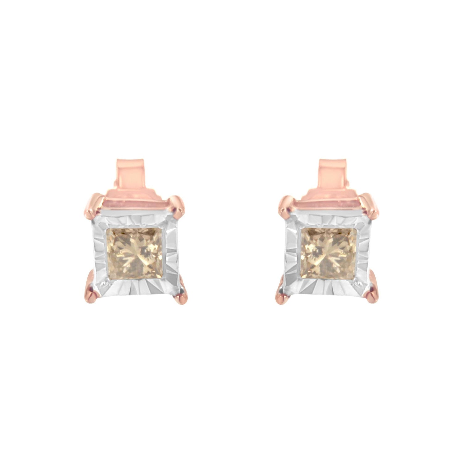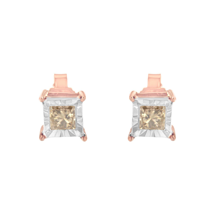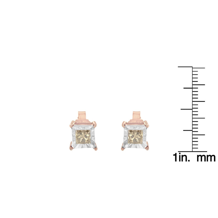 14K Rose Gold Plated Two-Tone .925 Sterling Silver 1/2 Cttw Princess-Cut Square Diamond Solitaire Miracle-Plate Stud Earrings (K-L Color, I2-I3 Clarity)