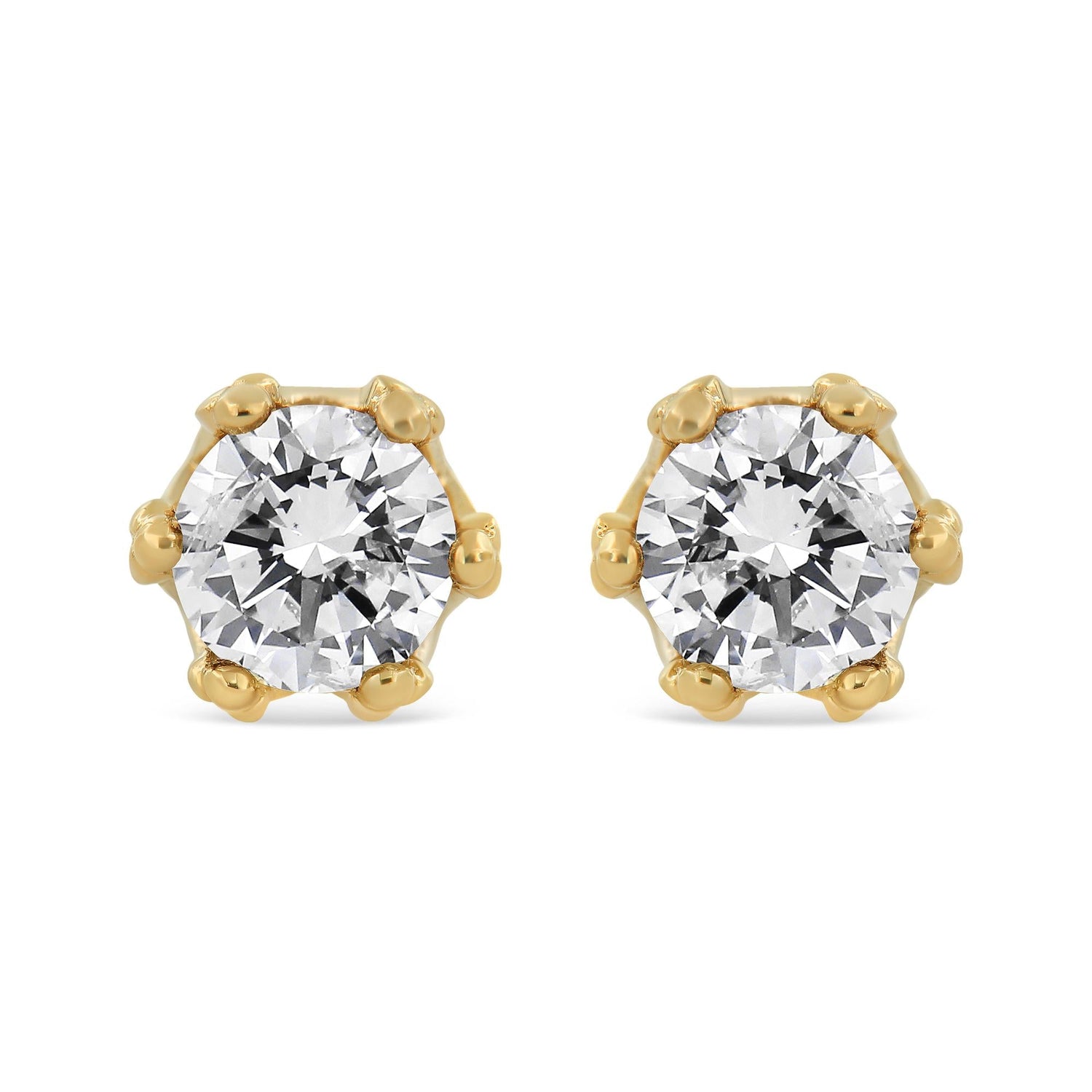 These 14K Yellow Gold 2.0 Cttw Round Diamond Crown Stud Earrings by Haus of Brilliance are a regal and modern design. Featuring round diamonds set in a crown design, these earrings are crafted in 14K yellow gold with a screw-back mechanism for secure and comfortable wear. The earrings are a total of 2.0 Cttw, making them a bold and glamorous addition to any jewelry collection.