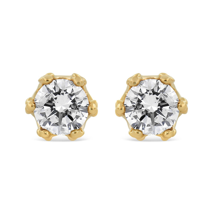 14K Yellow Gold 2.0 Cttw Round Diamond Crown Stud Earrings (I-J Color, I1-I2 Clarity)