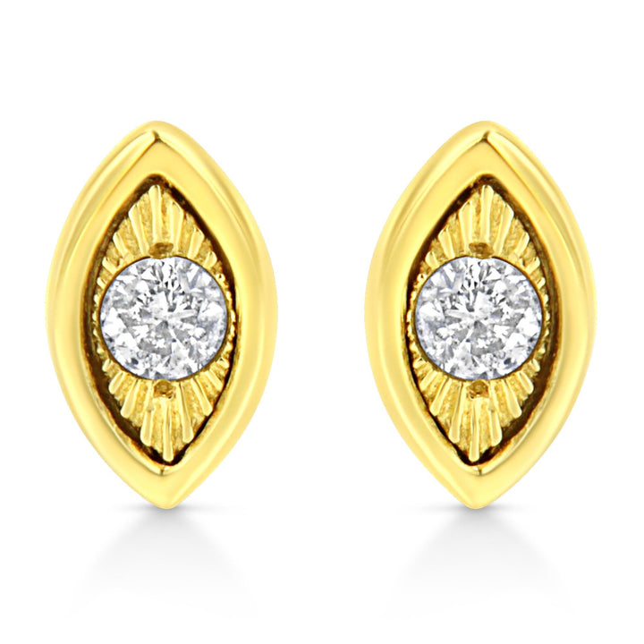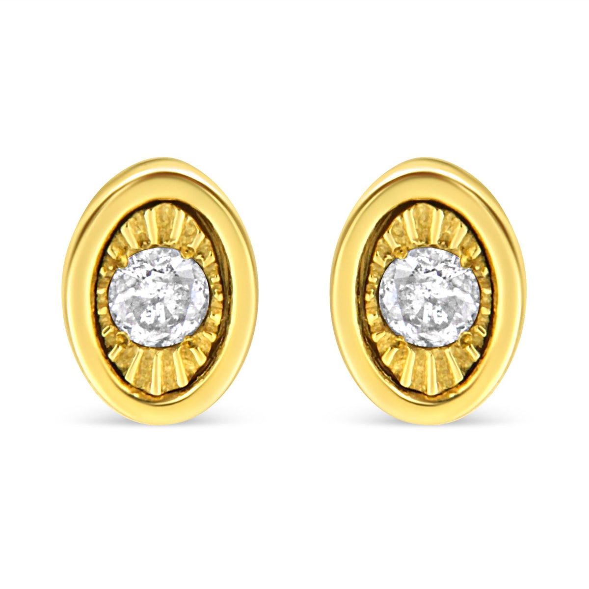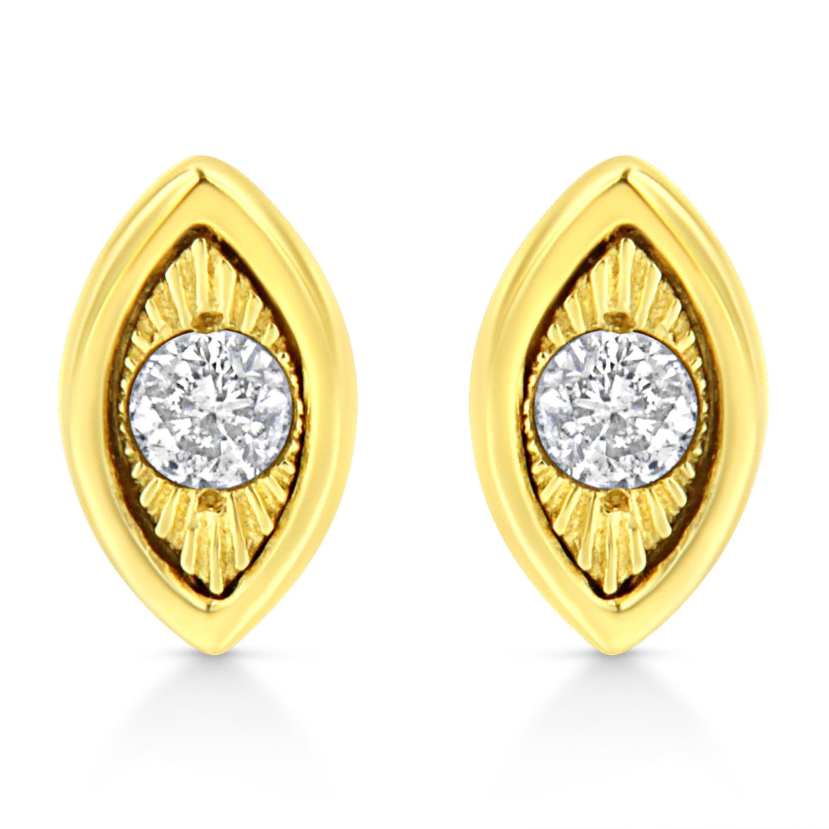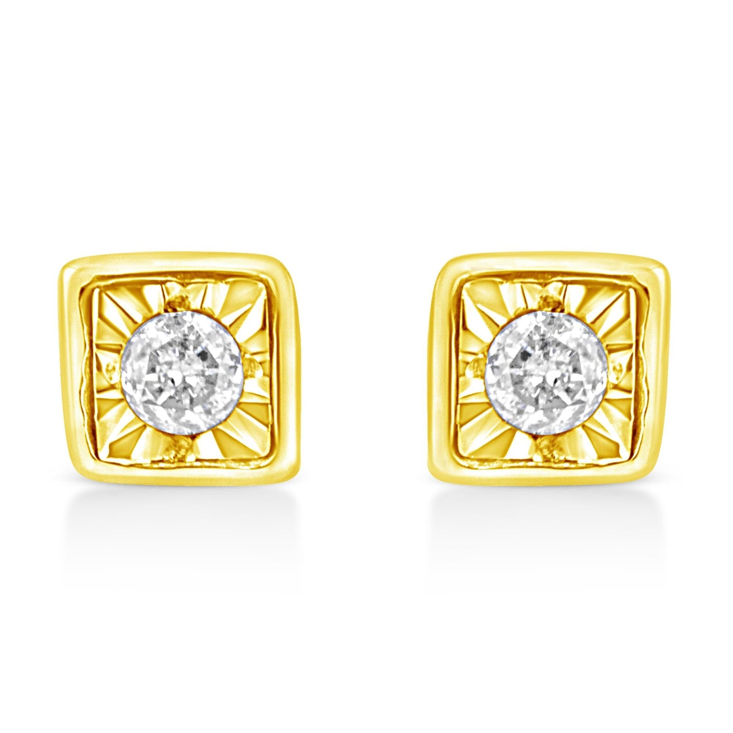 These 10K Yellow Gold Plated .925 Sterling Silver 1/10 Cttw Miracle-Set Diamond Stud Earrings by Haus of Brilliance feature a square design with a brilliant round-cut diamond in a miracle setting, ensuring exceptional sparkle. The warm yellow gold plating over sterling silver creates a luxurious frame for the diamonds. Whether you're dressing up or down, these stud earrings offer the perfect touch of sophistication.