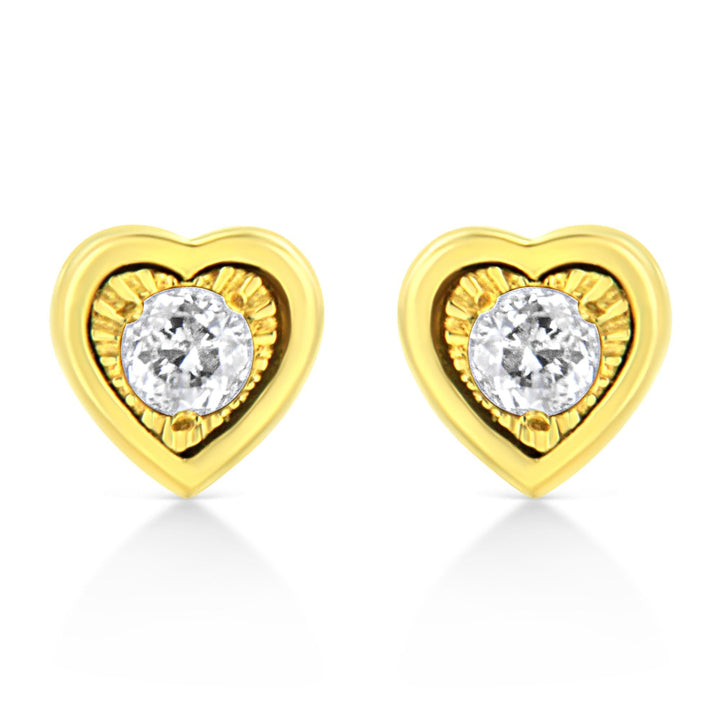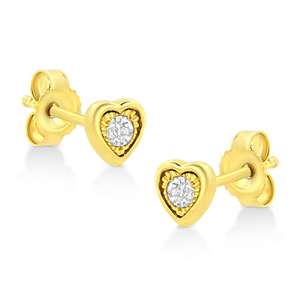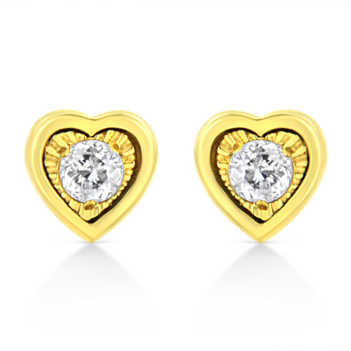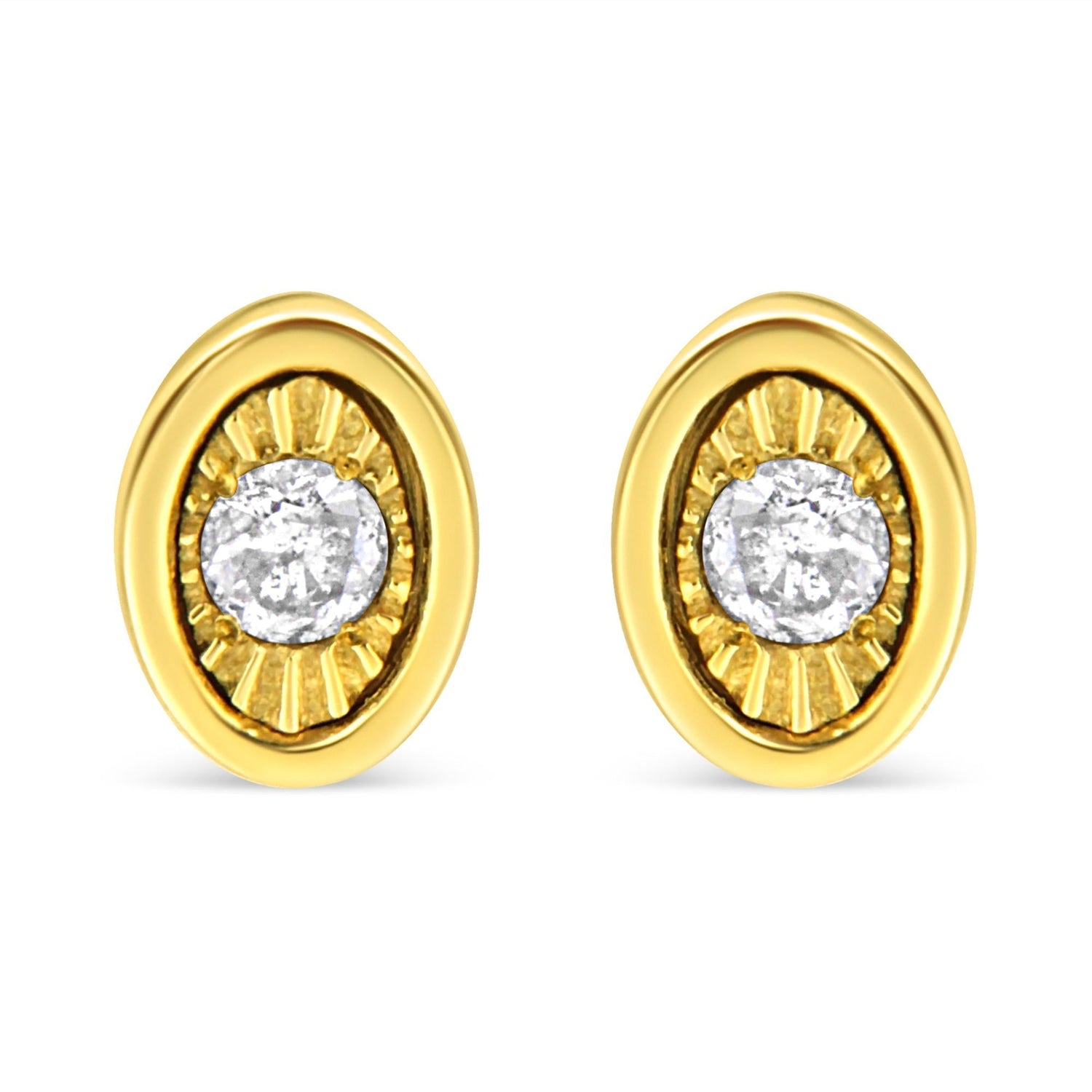 These 10K Yellow Gold Plated .925 Sterling Silver 1/10 Cttw Miracle-Set Diamond Stud Earrings by Haus of Brilliance feature a square design with a brilliant round-cut diamond in a miracle setting, ensuring exceptional sparkle. The warm yellow gold plating over sterling silver creates a luxurious frame for the diamonds. Whether you're dressing up or down, these stud earrings offer the perfect touch of sophistication.