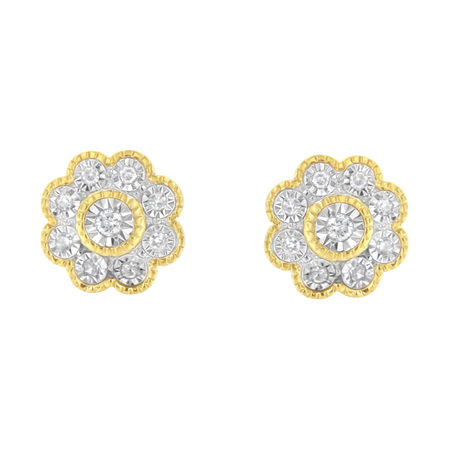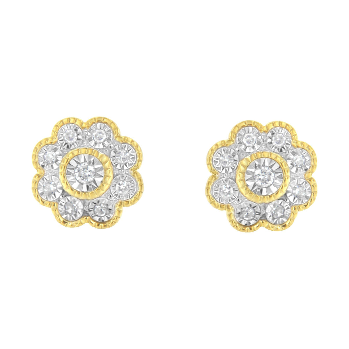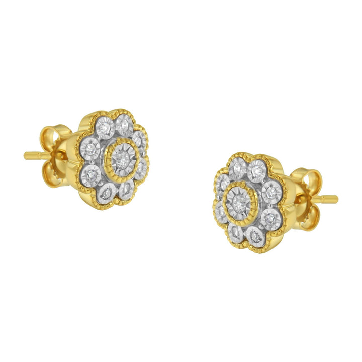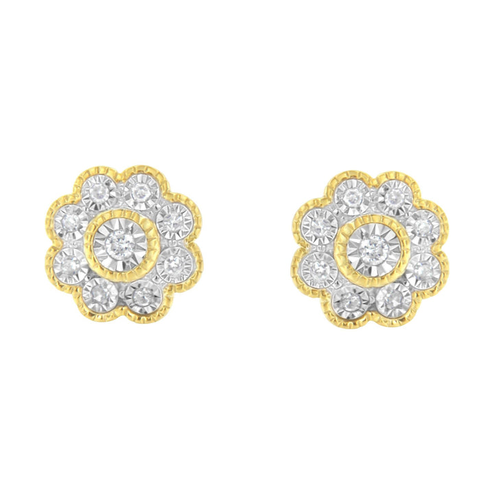 14K Yellow Gold Plated .925 Sterling Silver 1/6 Cttw Miracle-Plate Set Diamond Floral Stud Earrings (I-J Color, I2-I3 Clarity)