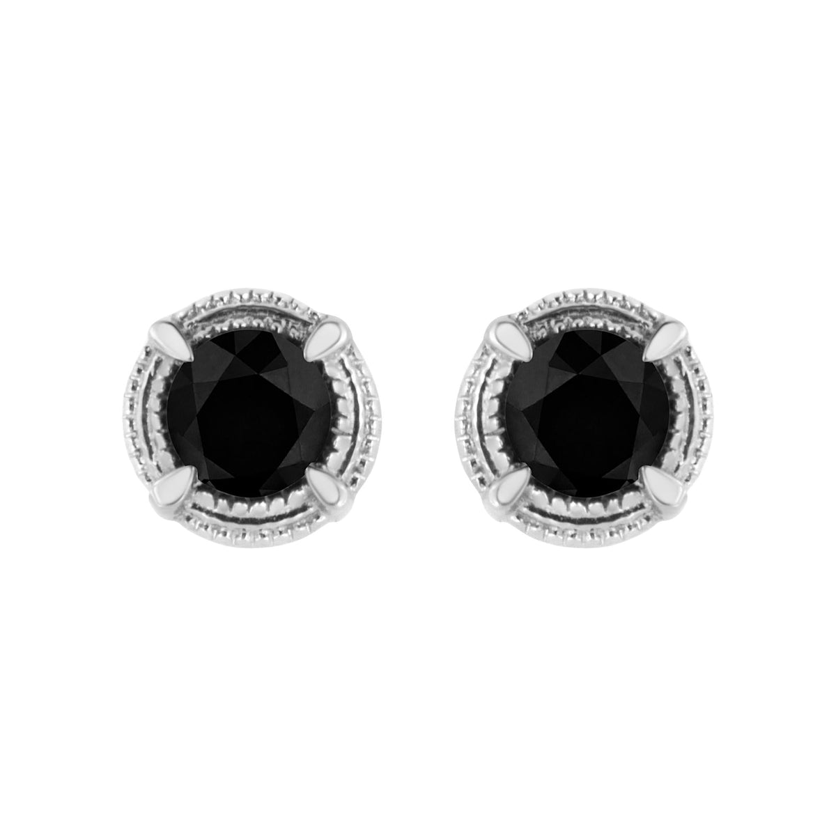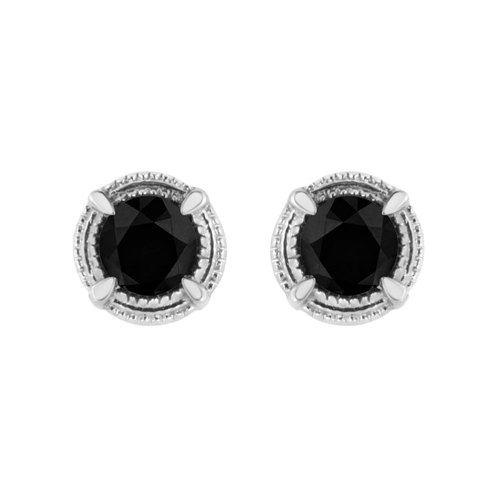 These .925 Sterling Silver Treated Colored Diamond Modern 4-Prong Solitaire Milgrain Stud Earrings by Haus of Brilliance feature a stunning design with treated black round-cut diamonds in a prong setting. The total carat weight is 1.0 Cttw, making these earrings a bold yet versatile accessory. Perfect for any occasion, these earrings come with a screw-back mechanism for a secure fit.