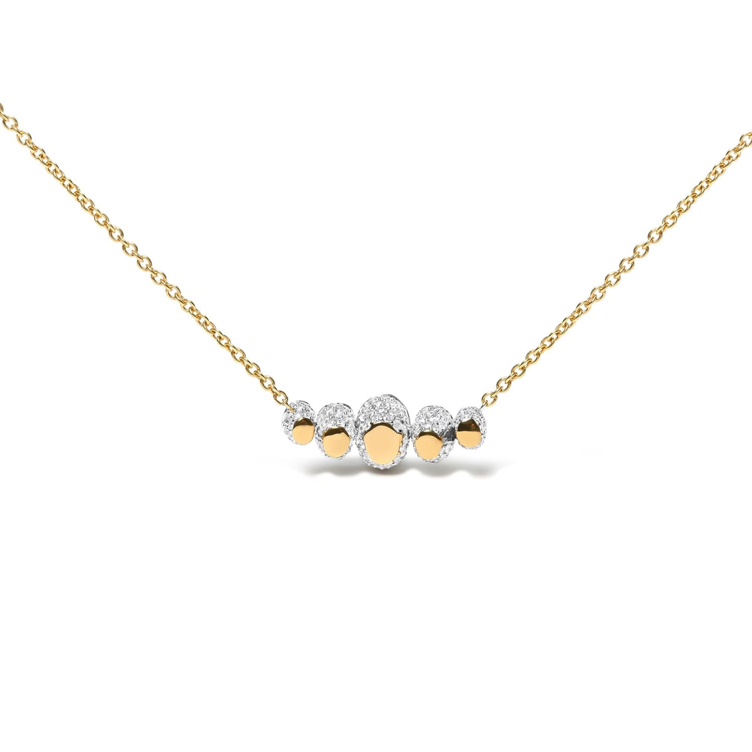 This 18K Rose Gold 3/4 Cttw Pave Diamonds and Graduated Green Tsavorite Gemstone Curved Bar Choker Necklace by Haus of Brilliance is a stunning piece featuring heat-treated green Tsavorite gemstones and pave diamonds set on a curved bar design. The adjustable length allows it to suit various necklines.