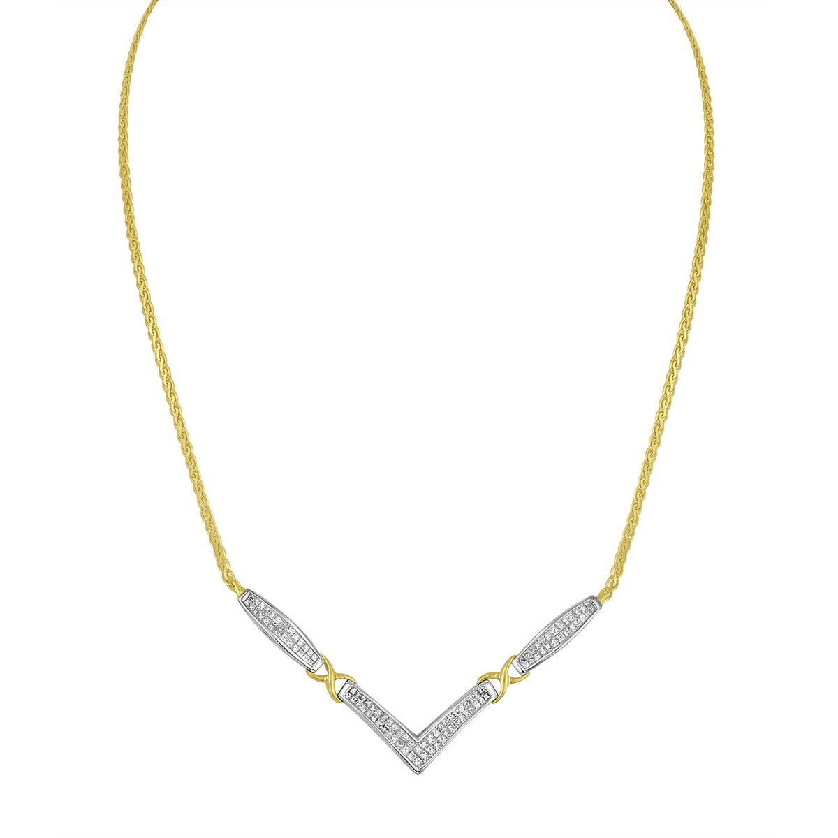 14K Yellow and White Gold 2.0 Cttw Princess Cut Diamond Flared and X-Station V Shaped 18” Franco Chain Statement Necklace (H-I Color, SI2-I1 Clarity)