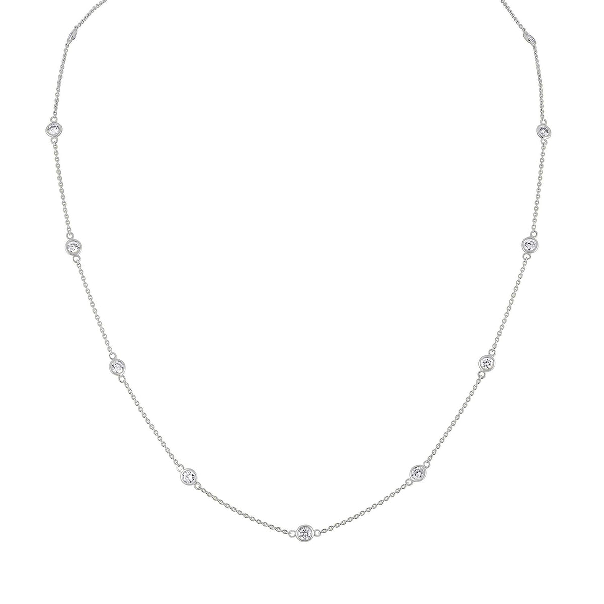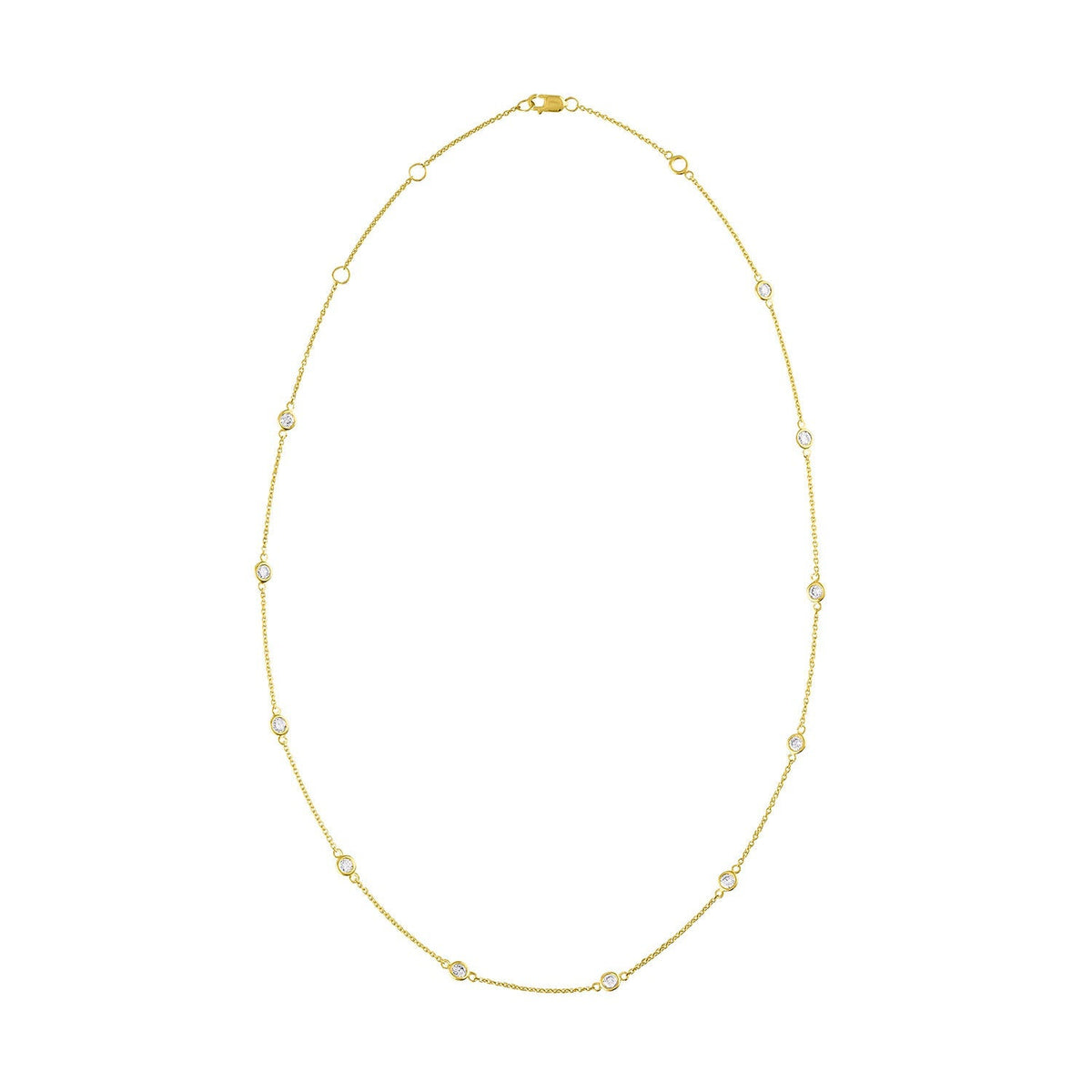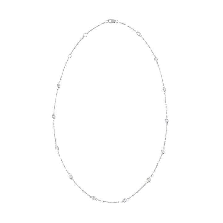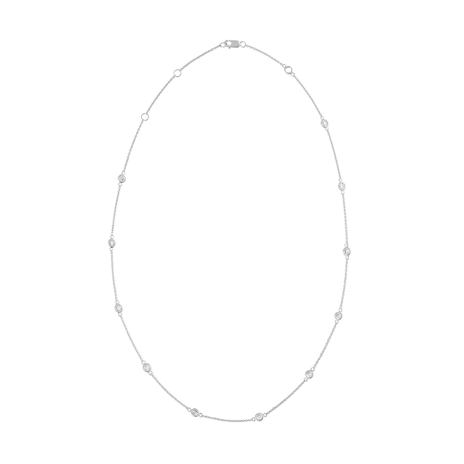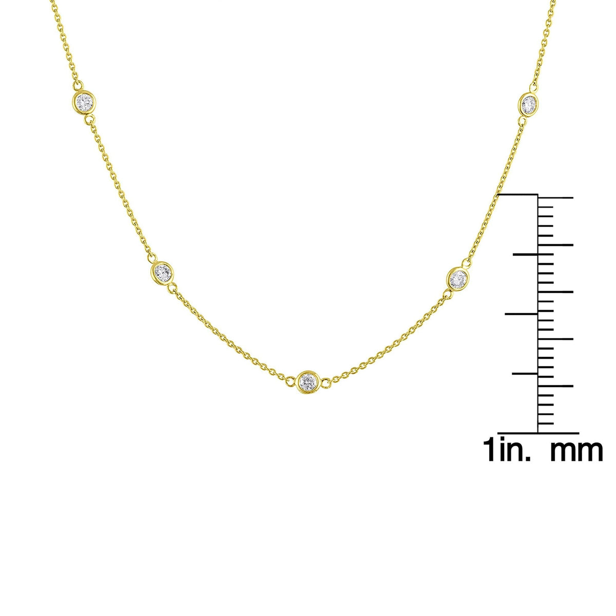 This 14K Gold Diamond Station Necklace by Haus of Brilliance is a delicate and elegant piece that features sparkling 1-carat round-cut natural diamonds, evenly spaced along a rolo chain. The bezel setting of each diamond gives this necklace a sleek, modern look, while the 14K yellow gold adds warmth and luxury. Perfect for any occasion, this piece will effortlessly elevate your style.