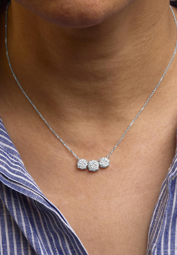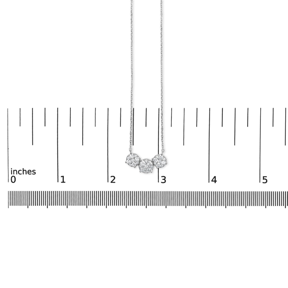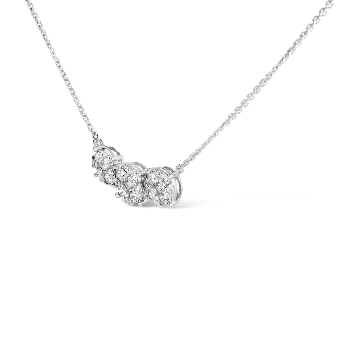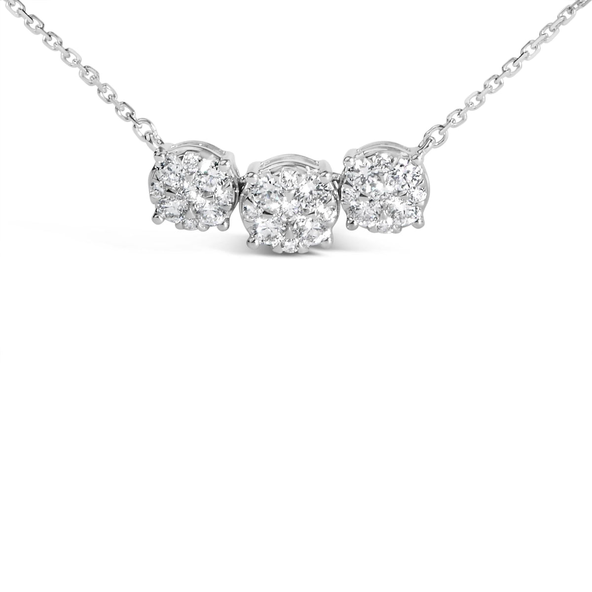 14K White Gold 1.0 Cttw Diamond 3 Station Cluster Necklace (G-H Color, VS2-SI1 Clarity) - 18' Inches