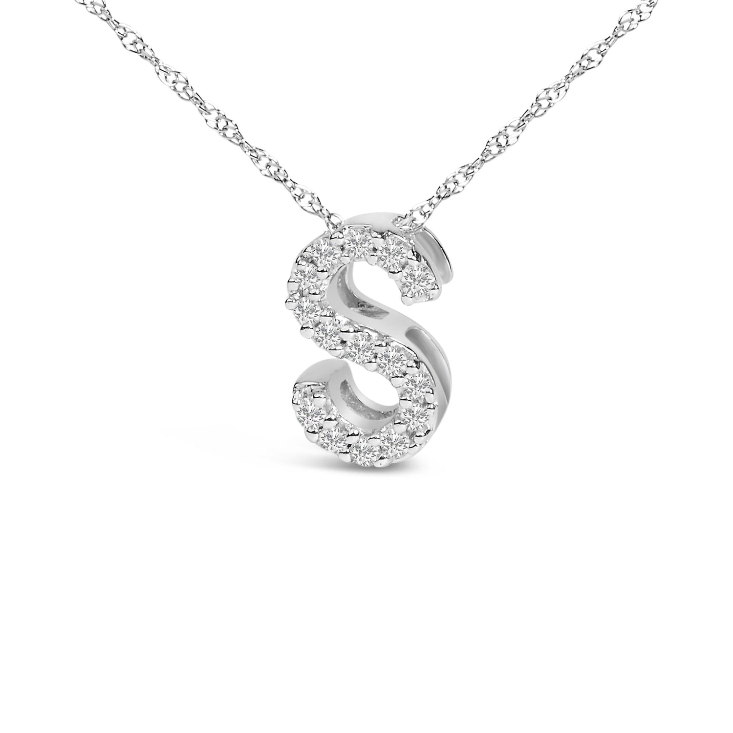 10K White Gold Diamond Accent 'A to Z' Alphabet Initial Pendant Necklace (H-I Color, I2-I3 Clarity) - 18' Inches