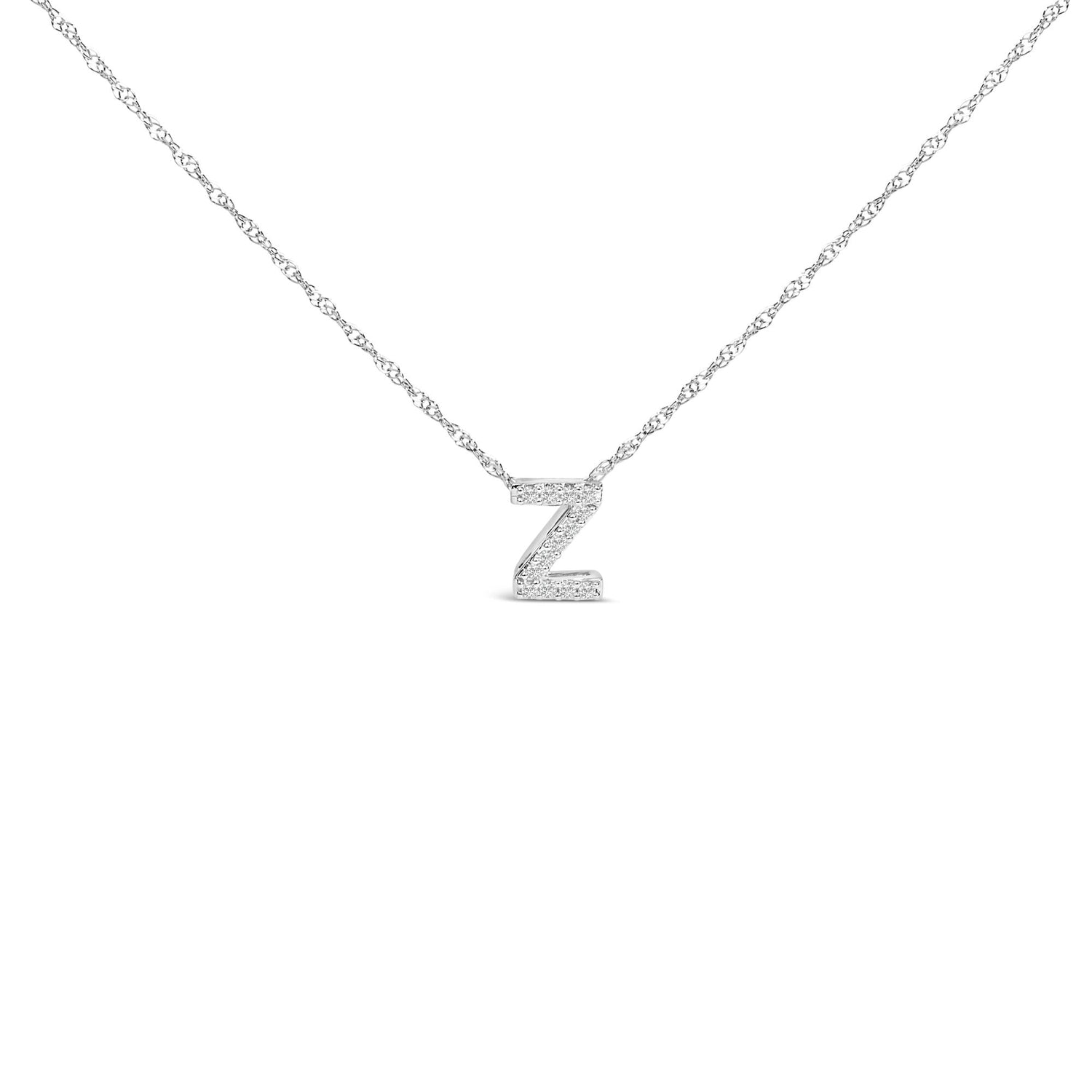 This 10K White Gold Diamond Accent 'A to Z' Alphabet Initial Pendant Necklace by Haus of Brilliance is the perfect blend of personal symbolism and sophisticated design. The letter 'Z' pendant, adorned with natural diamonds, shines with I2-I3 clarity and H-I color, making it a sparkling tribute to identity and individuality. Crafted from rhodium-plated 10K white gold for added luster, this necklace is secured by a spring ring clasp, sitting perfectly at the collarbone. Ideal for both everyday wear and special occasions, this necklace is a timeless statement piece.