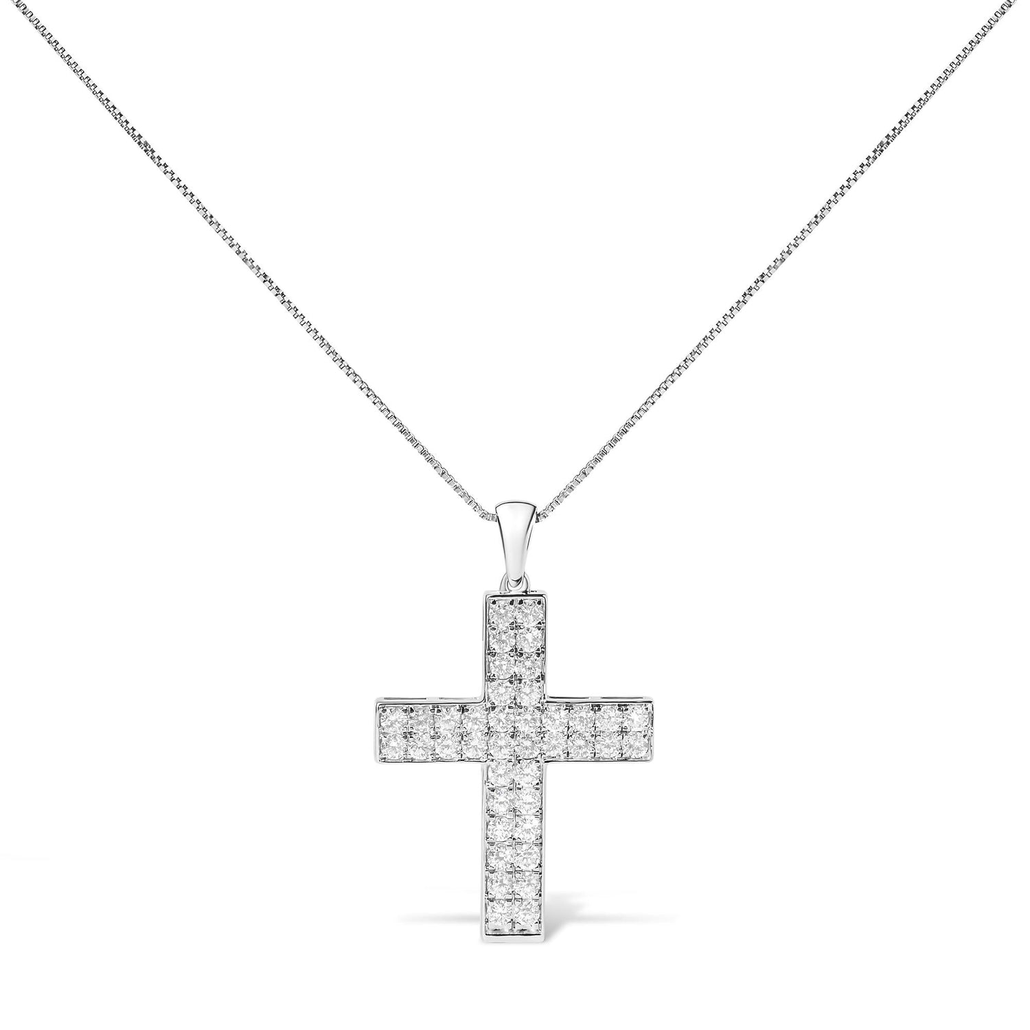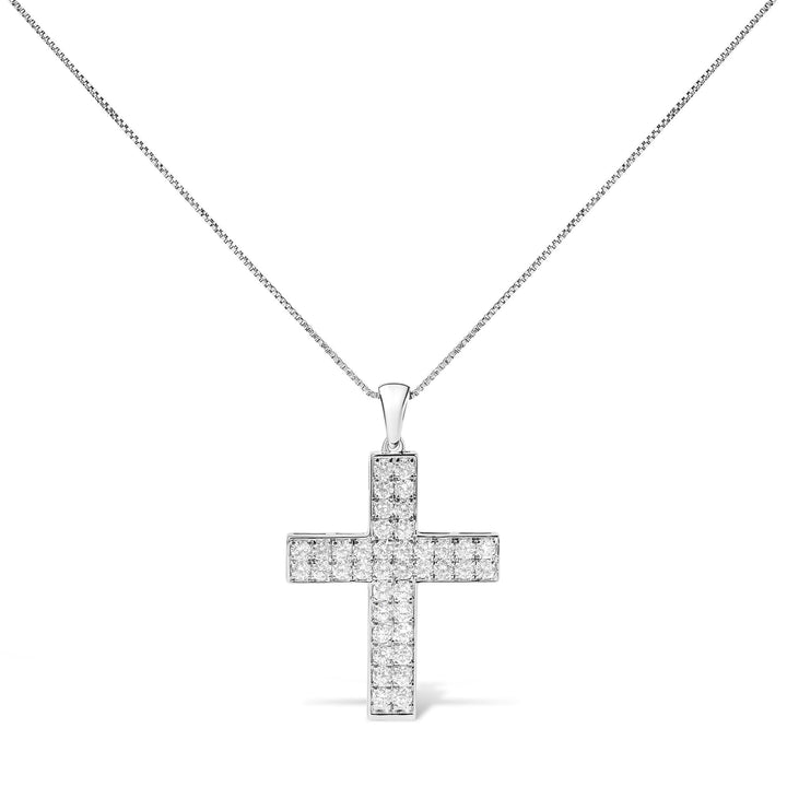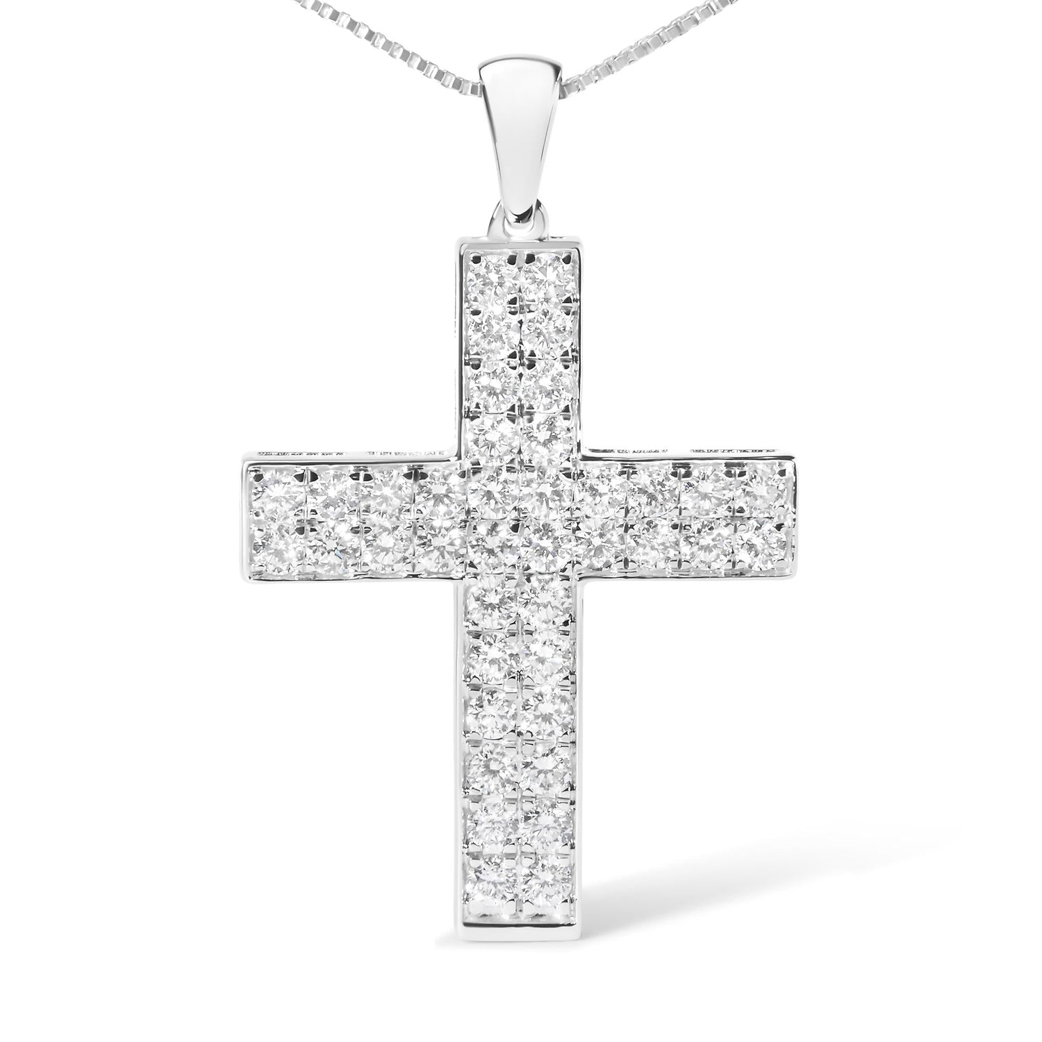 14K White Gold 2.0 Cttw Lab Grown Diamond Inlay Cross Pendant Necklace (F-G Color, VS1-VS2 Clarity) - 18' Inches