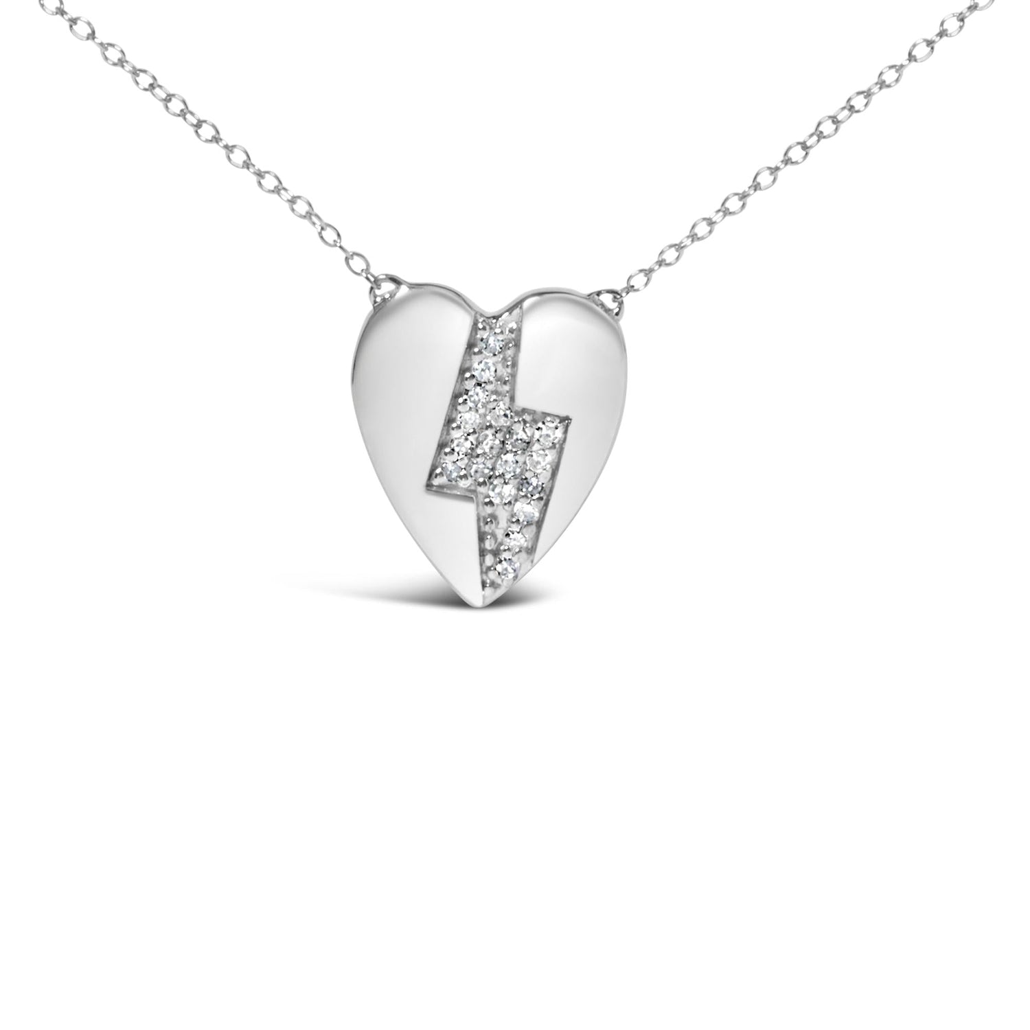 925 Sterling Silver 1/3 Ctw Diamond Heart and Lightning Bolt Pendant Necklace (H-I Color, SI1-SI2 Clarity) - 18' Inches
