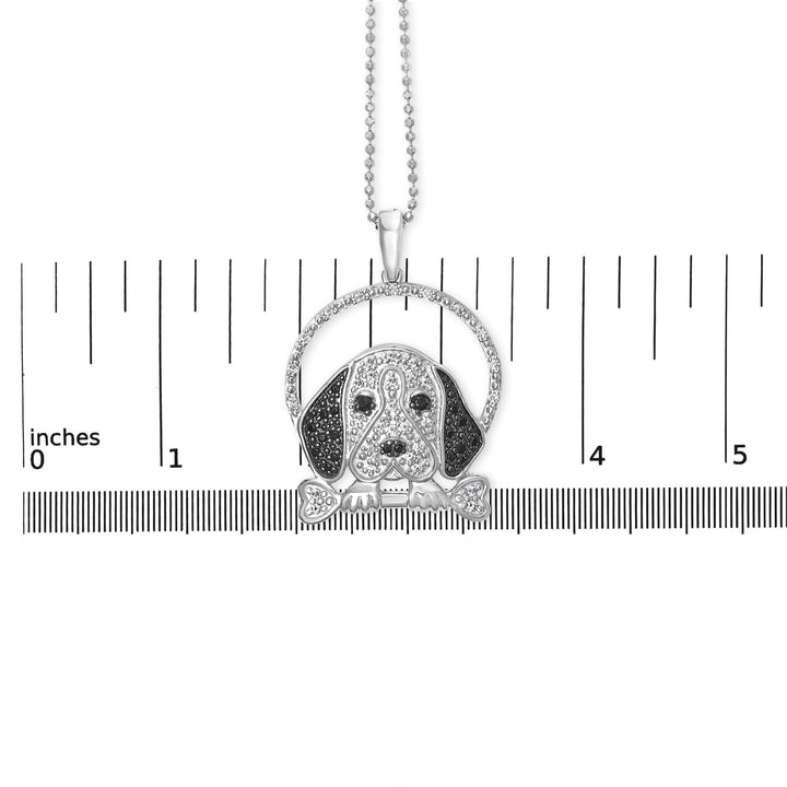 .925 Sterling Silver 1/4 Cttw White and Black Diamond Beagle Dog and Bone Pendant Necklace (I-J Color, I2-I3 Clarity) - 18' Inches