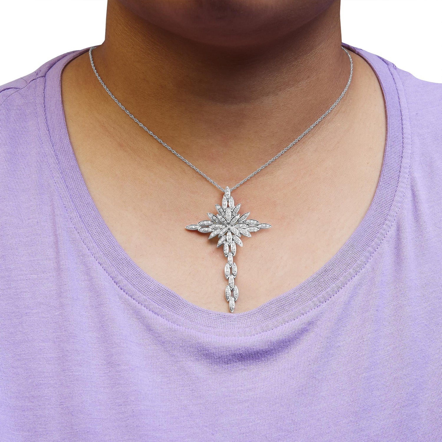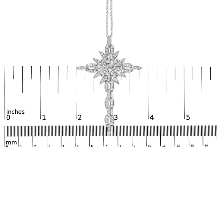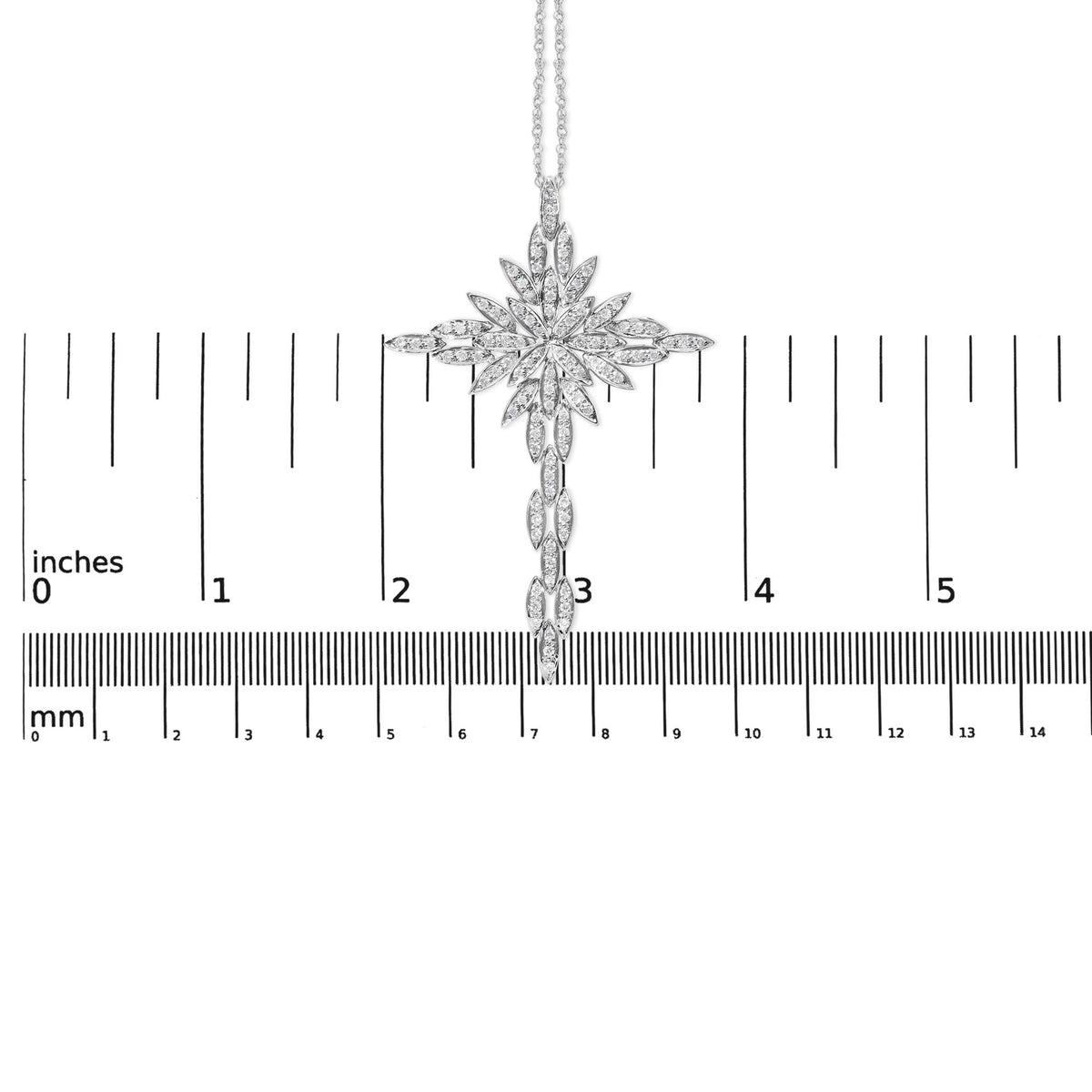 14K White Gold 1.0 Cttw Cocktail Cluster Cross 18' Pendant Necklace (H-I Color, SI1-SI2 Clarity)