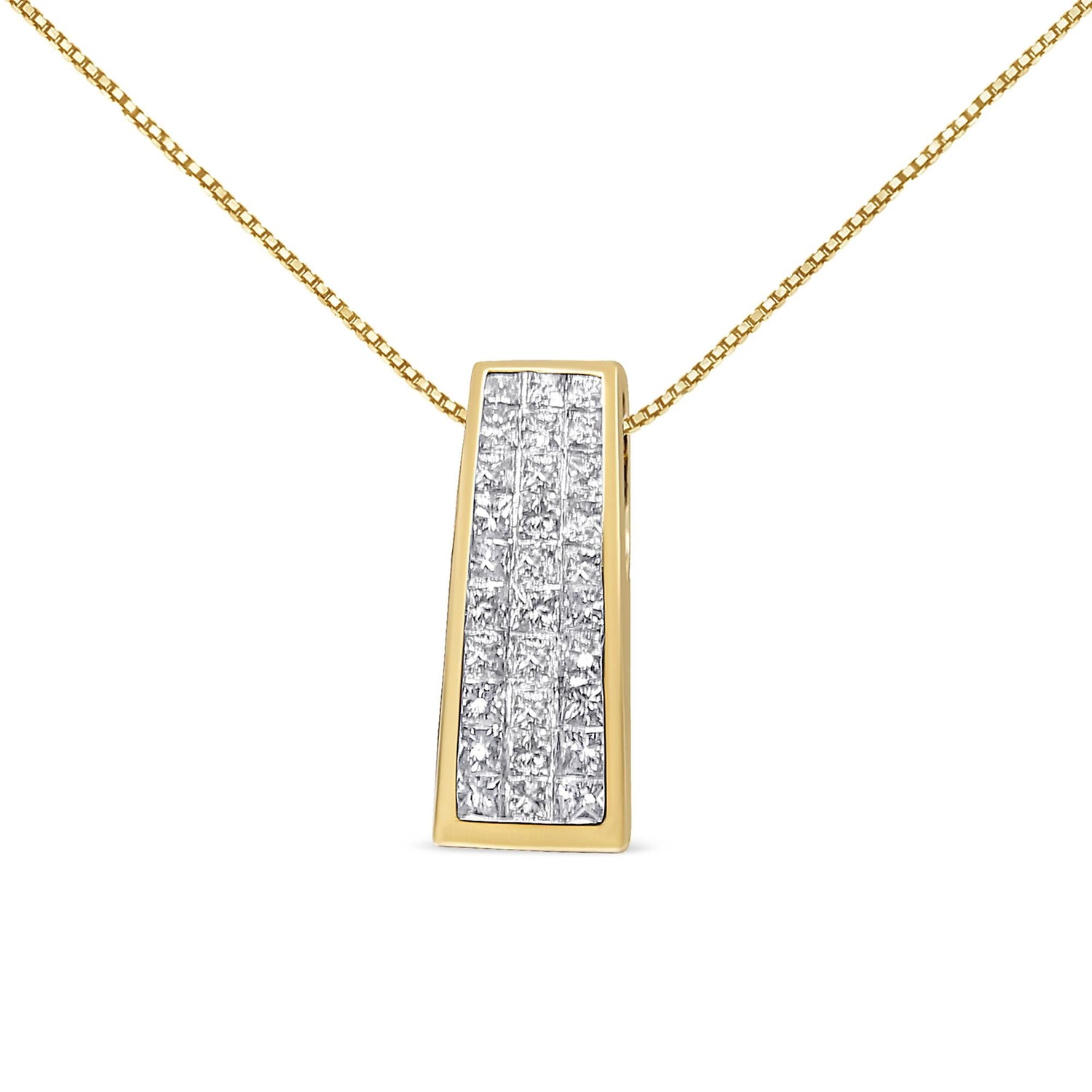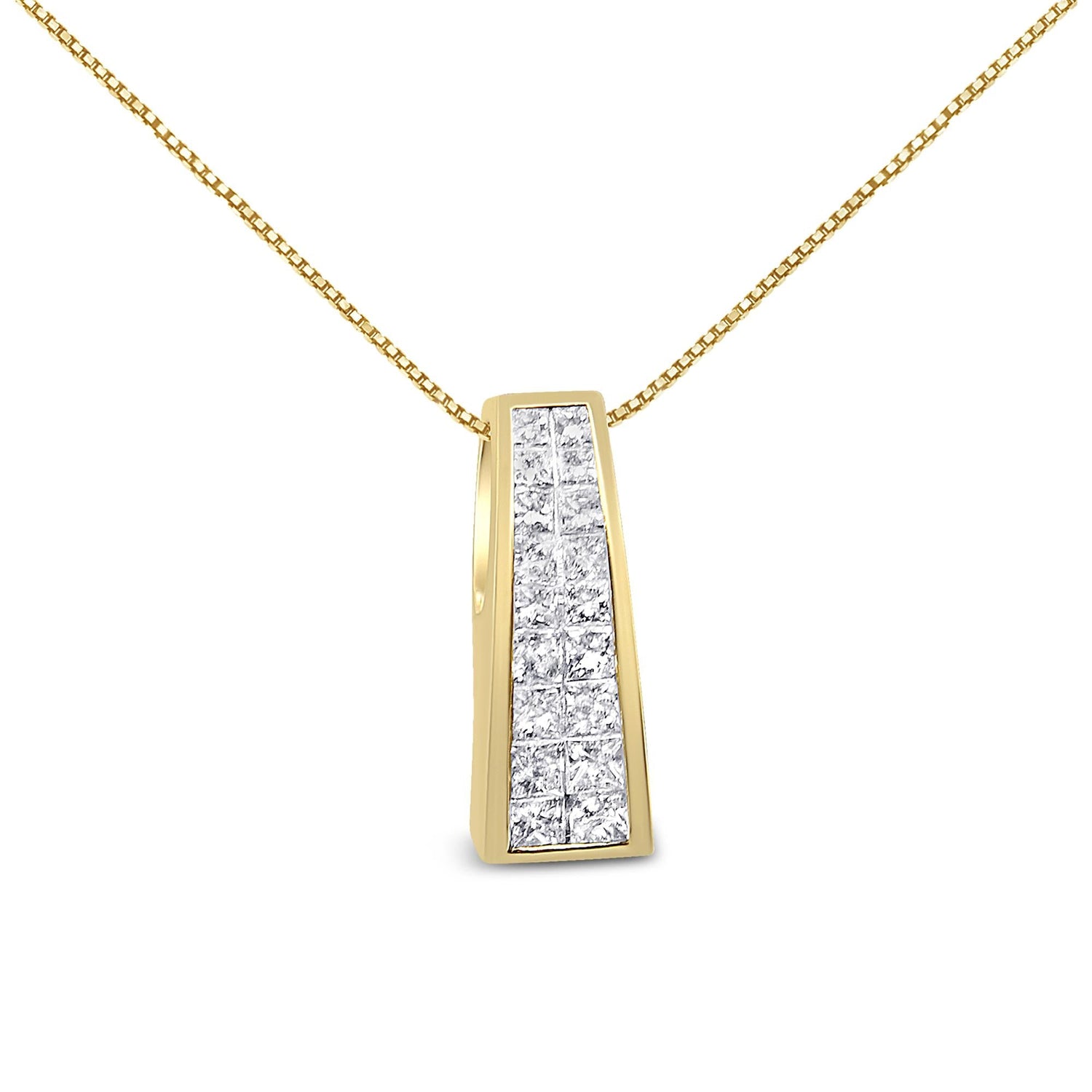 14K Yellow Gold 1 1/2 cttw Princess Cut Diamond Greek Column Pendant Necklace (G-H, VS1-VS2)