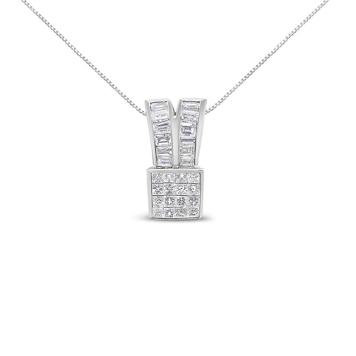 14K White Gold 1 5/8 cttw Princess and Baguette Cut Diamond Heart Ribbon Pendant Necklace (G-H, VS1-VS2)