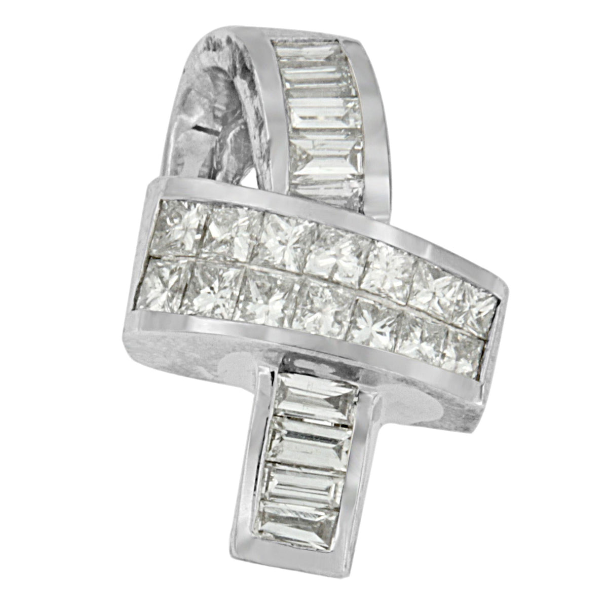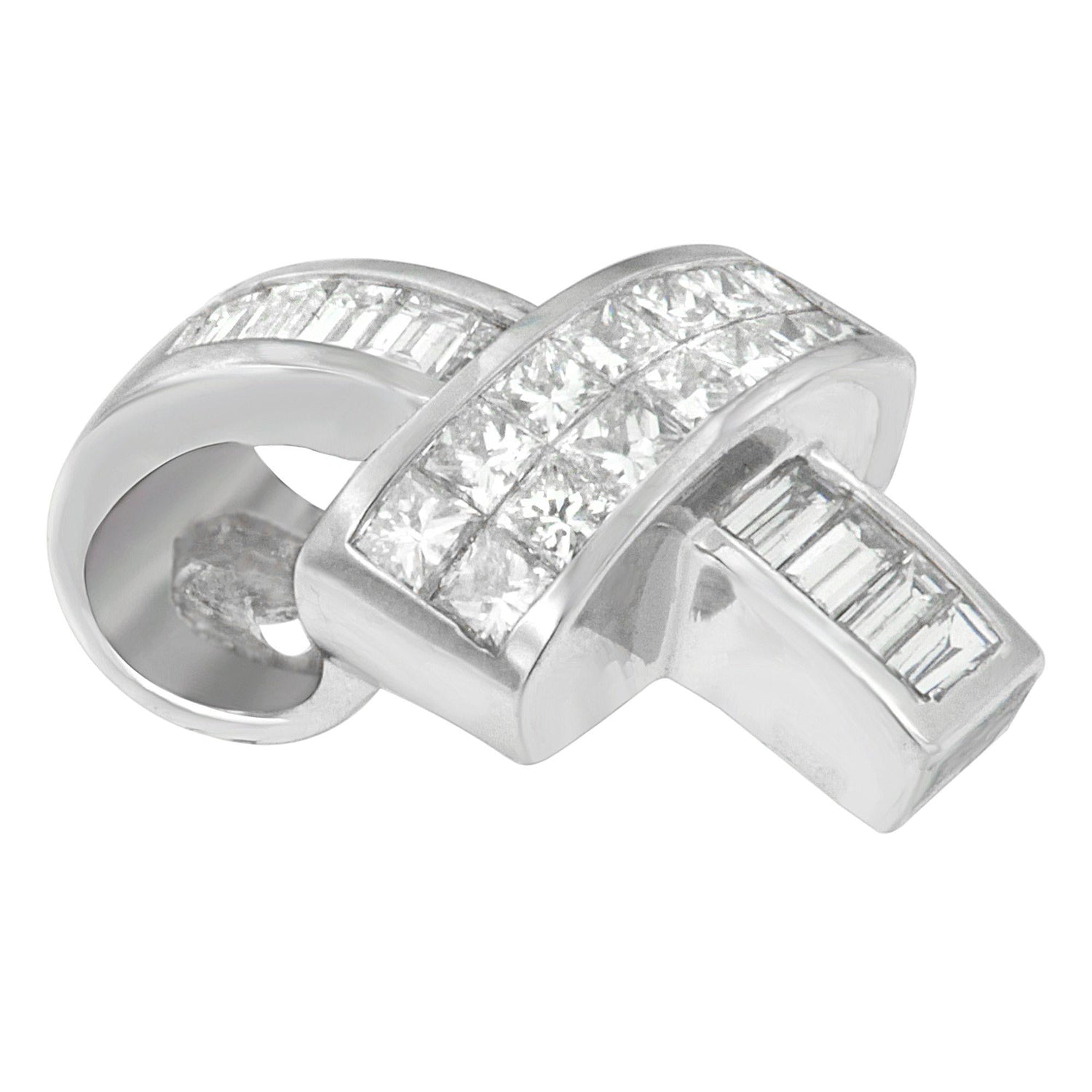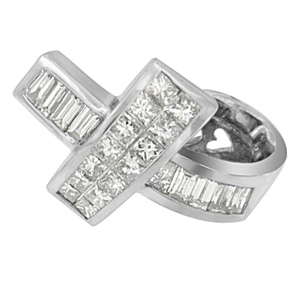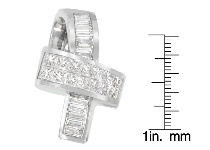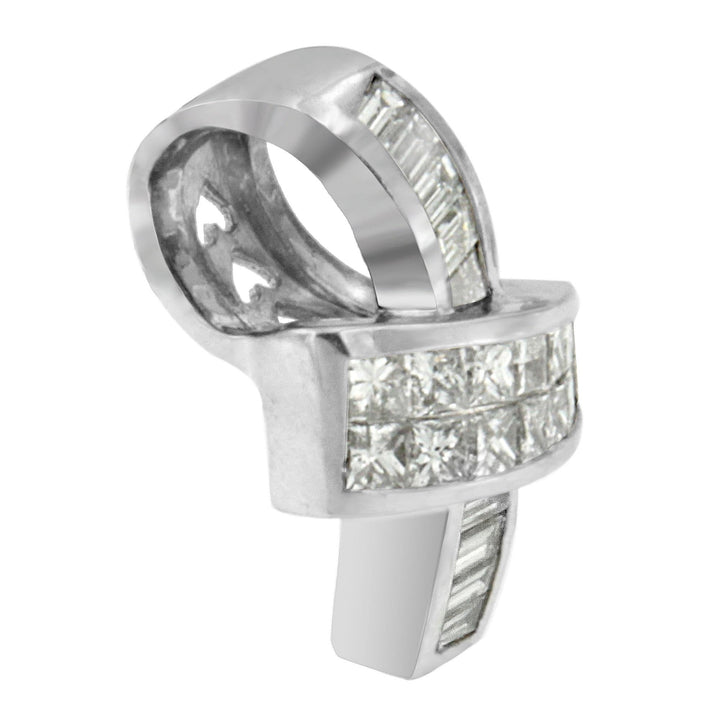 14K White Gold 2 cttw Princess and Baguette Cut Diamond Ribbon Pendant Necklace (H-I, SI-SI2)