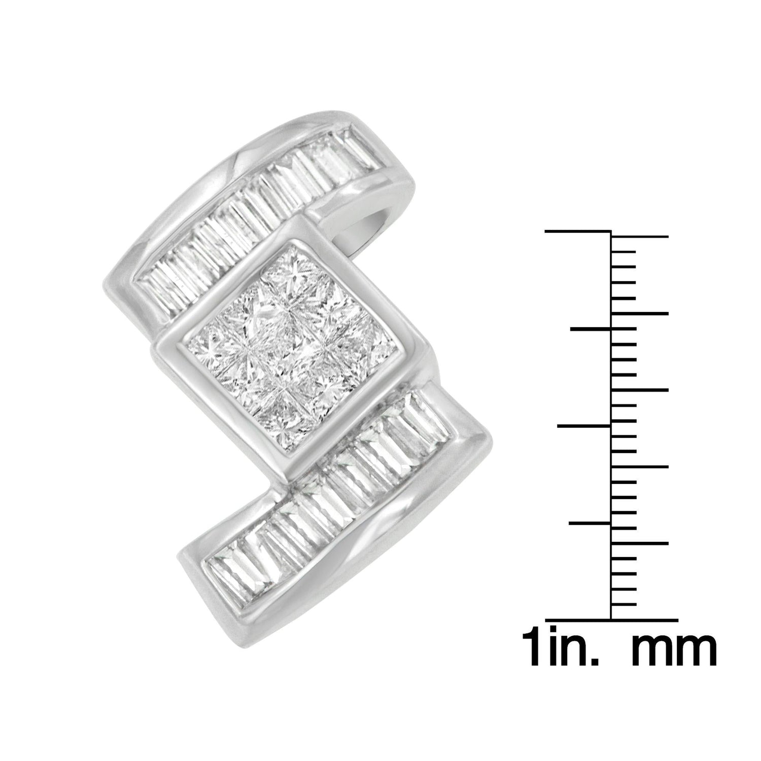 14K White Gold 1 2/5 cttw Princess and Baguette Cut Diamond Zig Zag Pendant Necklace (H-I, SI1-SI2)