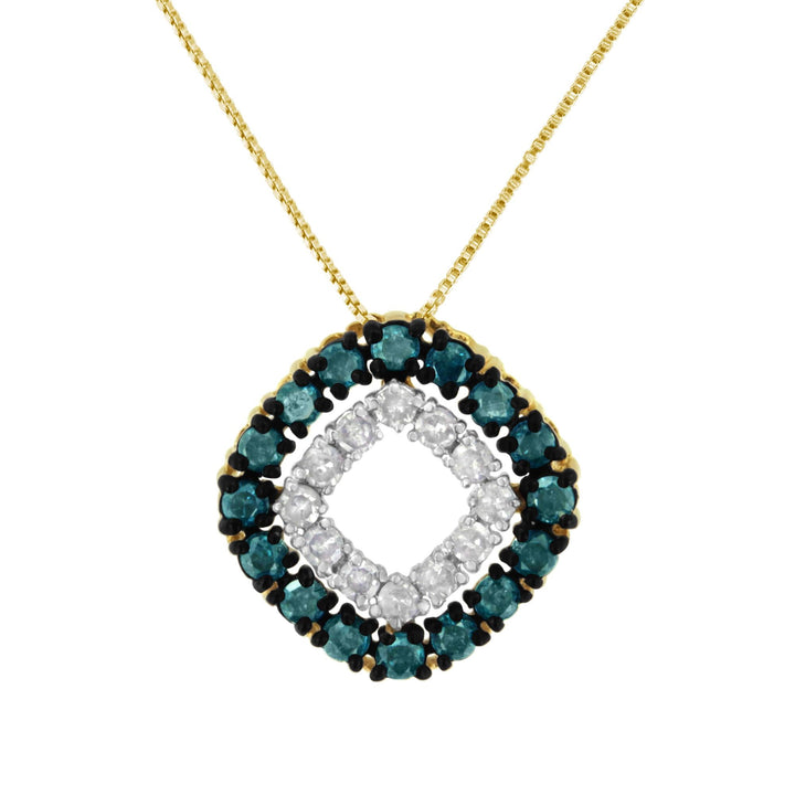 14K Yellow Gold Plated .925 Sterling Silver 1/2 Cttw Color Treated Diamond Square Pendant Necklace (Blue, Yellow, I2-I3 Clarity)