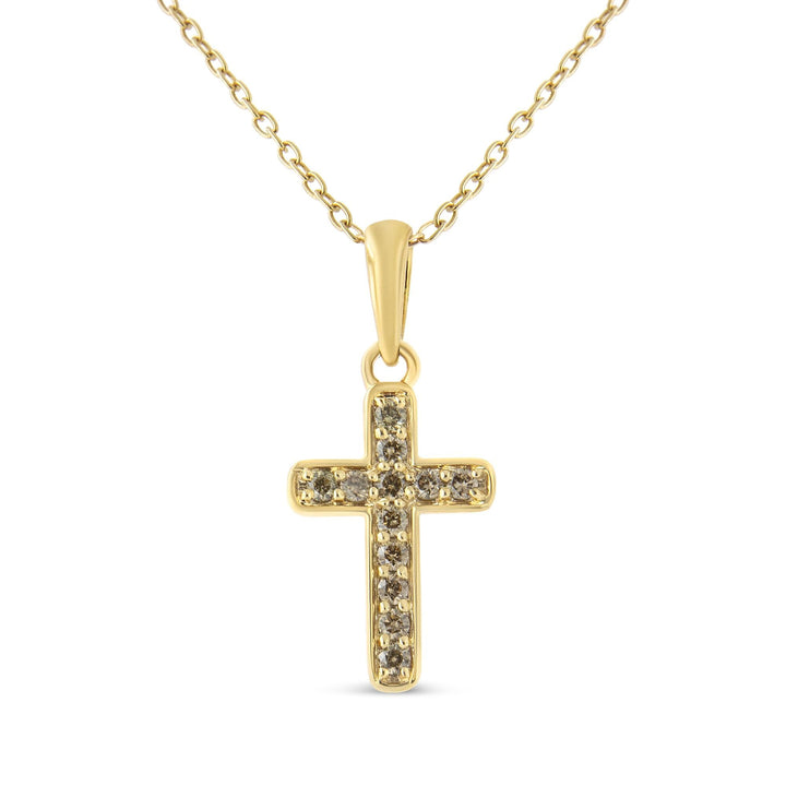 10K Yellow Gold Flashed .925 Sterling Silver 1/4 Cttw Champagne Diamond Cross Pendant Necklace (K-L Color, I1-I2 Clarity) - 18'