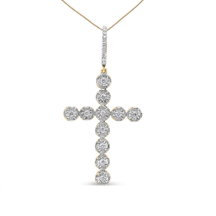 This Diamond Cross Pendant by Haus of Brilliance captures strength and faith in a bold silhouette designed for men. Cast in rich 10K yellow gold and adorned with sparkling miracle-set diamonds, this piece features a powerful circle-link cross form that exudes elegance and conviction. Please note: chain not included.
