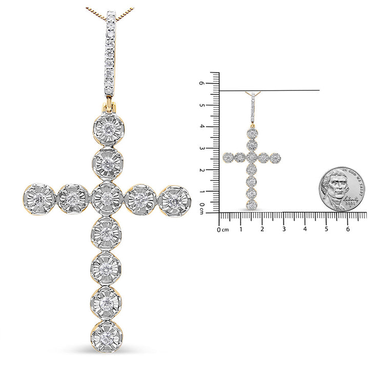 10K Yellow Gold 5/8 Cttw Miracle Set Round Diamond Circle Link Cross Pendant Necklace for Men (H-I Color, SI1-SI2 Clarity) - NO CHAIN INCLUDED