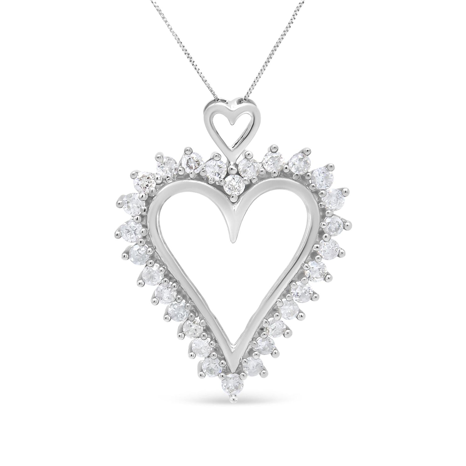 .925 Sterling Silver 1 3/4 Cttw Round Diamond Lined Open Heart Pendant 18' Necklace (I-J Color, I2-I3 Clarity)