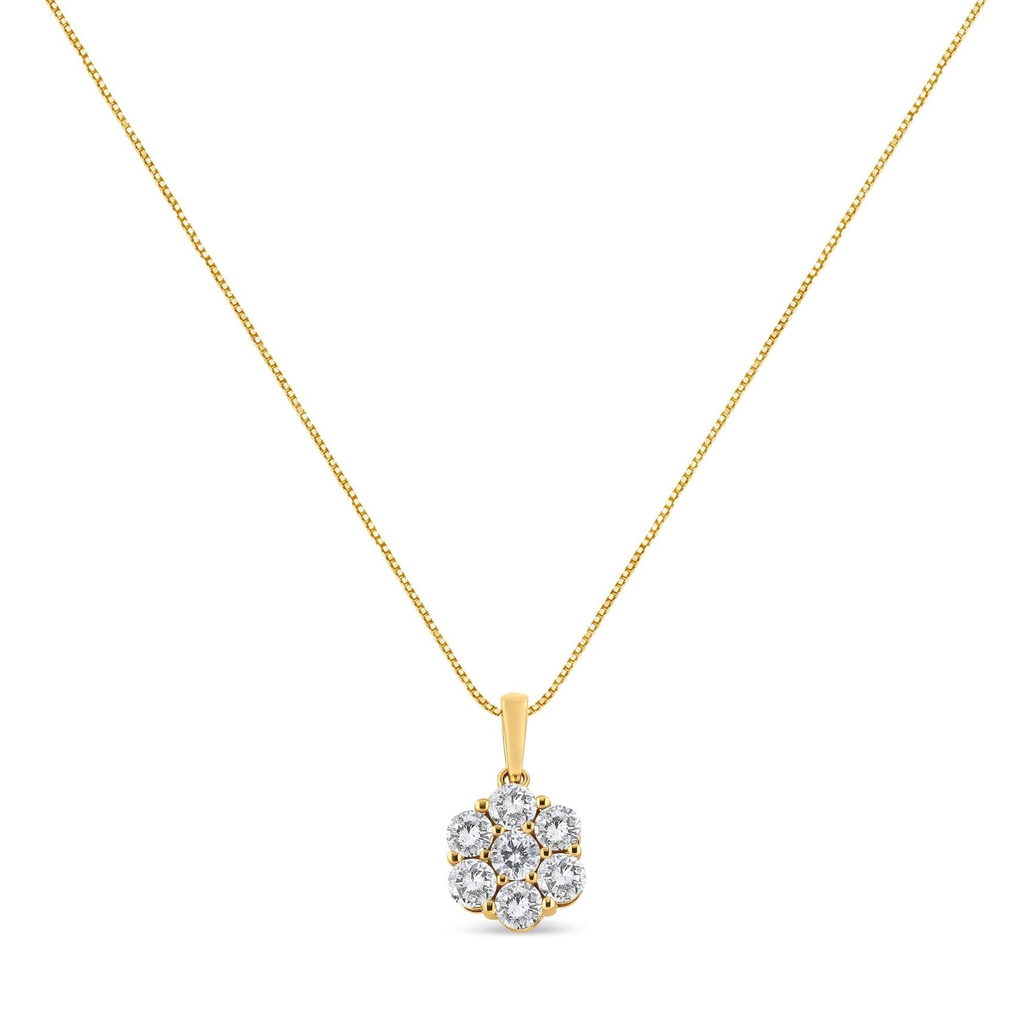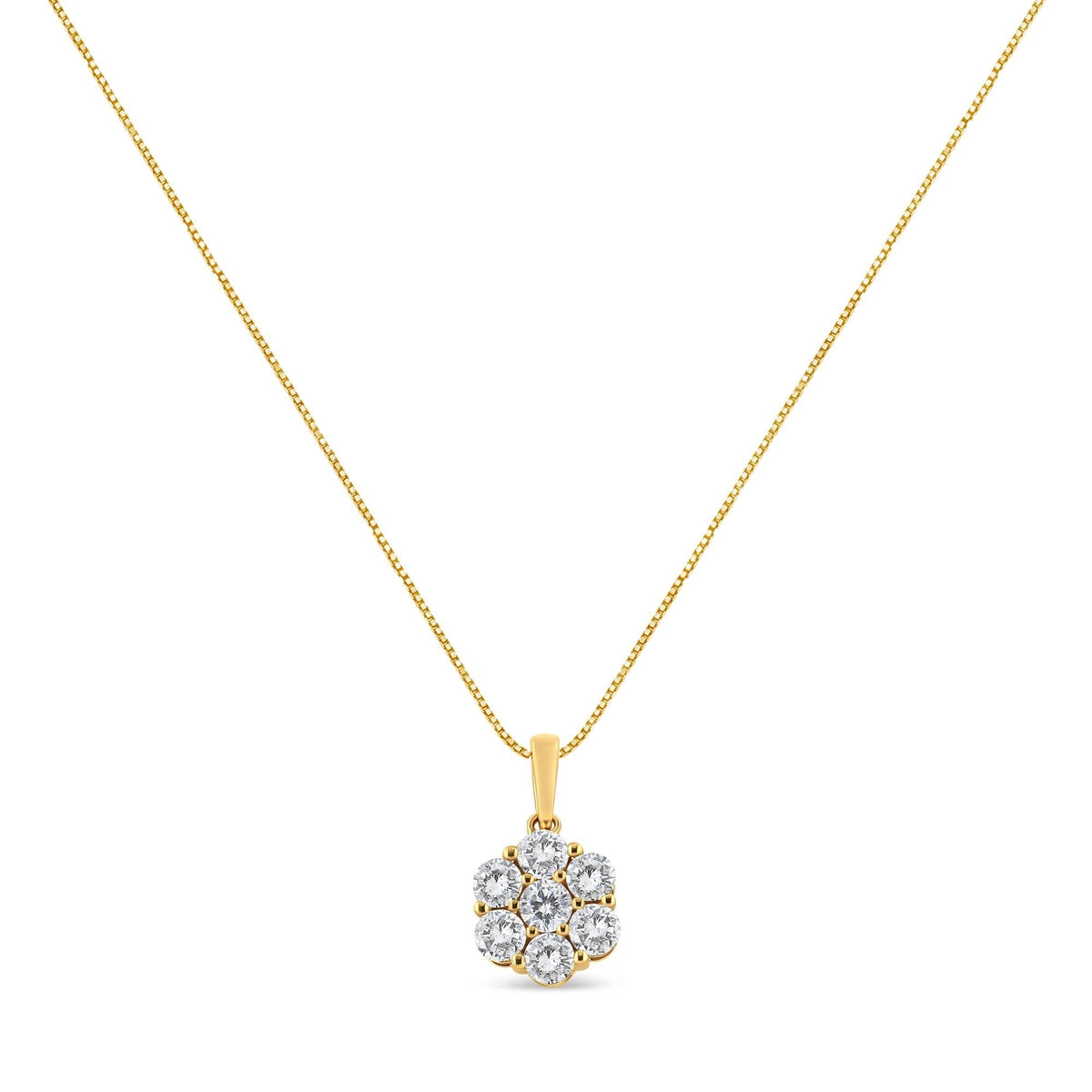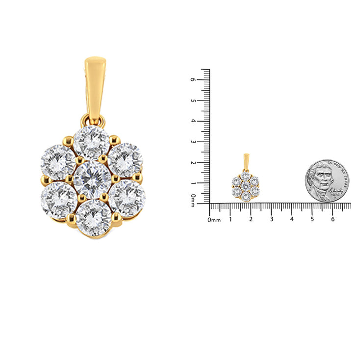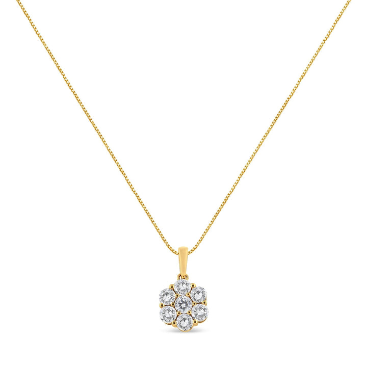 14K Yellow Gold 2.00 Cttw Brilliant Round-Cut Diamond 7 Stone Flower Cluster 18' Pendant Necklace (H-I Color, SI2-I1 Clarity)
