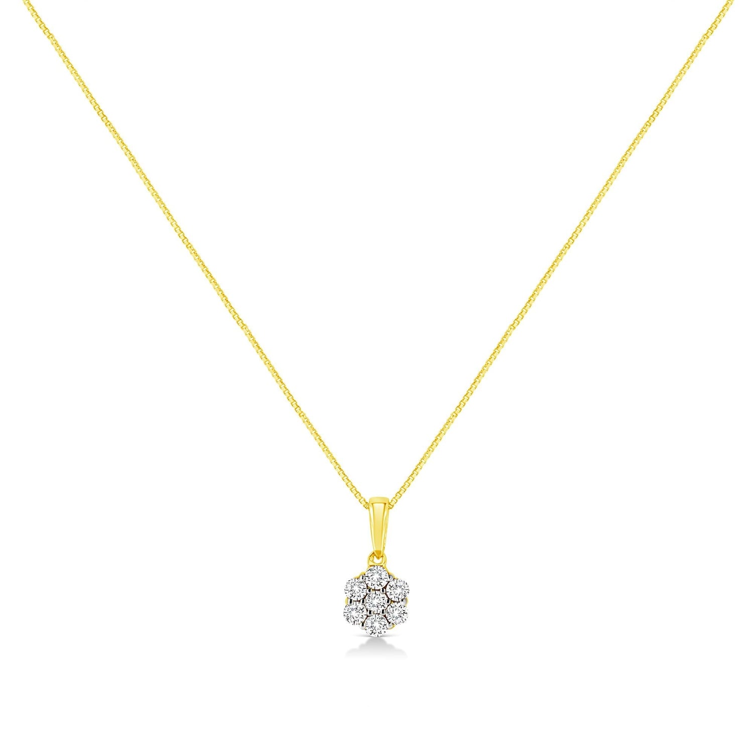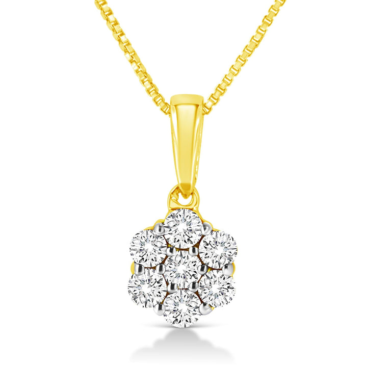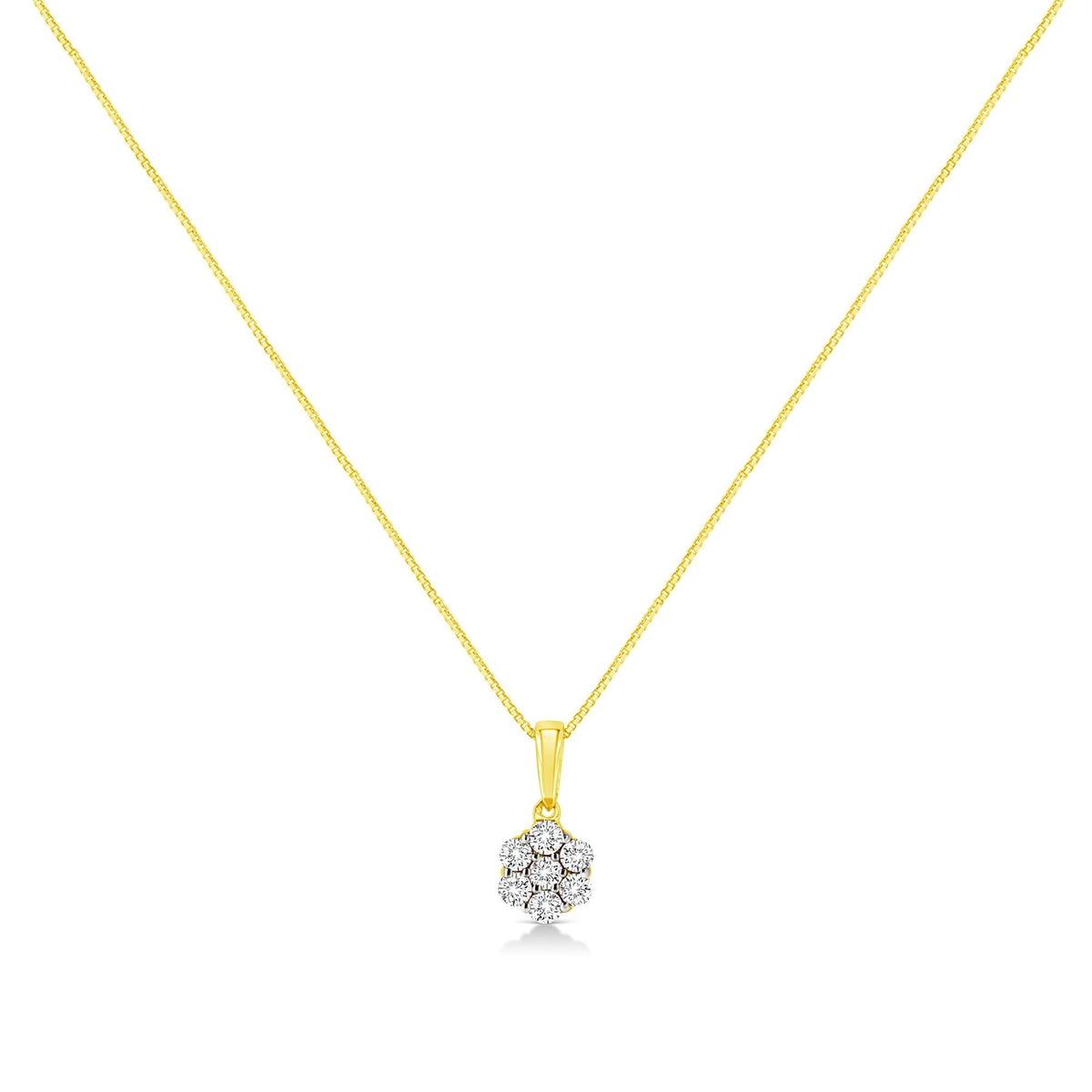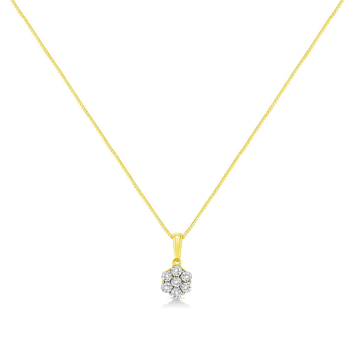 14K Yellow Gold 1/4 Cttw Prong Set Round-Cut Diamond 7 Stone Floral Cluster 18' Pendant Necklace (H-I Color, I1-I2 Clarity)